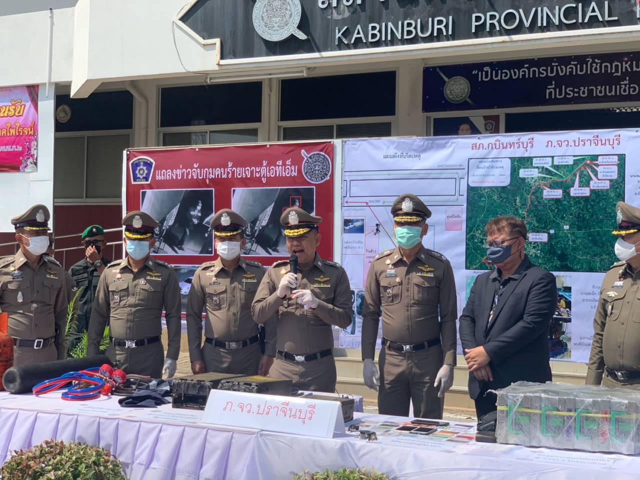 จากกรณี เมื่อช่วงเช้ามืดวันที่ 4 ก.พ.64 ได้มีคนร้าย จำนวน 3 คน ใช้รถกระบะเข้ามาใช้แก๊สตัดตู้เอทีเอ็ม ที่บริเวณหน้าร้าน “เจ๊รัตน์เครื่องครัว” ในตลาดไทยประคอง เลขที่ 11 หมู่ 8 ต.กบินทร์บุรี ข้างถนนสาย 304 ได้เงินสดไป จำนวน 758,000 บาท โดยหลังเกิดเหตุทางเจ้าหน้าที่ตำรวจชุดสืบสวน ภาค 2 สืบสวน ภ.จว.ปราจีนบุรี สืบสวน สภ.กบินทร์บุรี จึงได้ออกติดตามคนร้าย และเช็กเส้นทางหลบหนีจากภาพกล้องวงจรปิด จนกระทั่งสามารถรู้ตัวคนร้ายผู้ก่อเหตุจนจับกุมได้ และนำตัวมาแถลงข่าวยัง สภ.กบินทร์บุรี