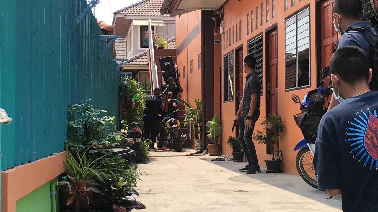 จากนั้นทางตำรวจได้แยกสอบสวนผู้ต้องหา ทราบว่าหลังเกิดเหตุ นายรัน ได้พา นายสิทธิพงษ์ หรือโหม่ง ไปส่งที่ห้องเช่าแห่งหนึ่งใน ต.รั่วใหญ่ อ.เมืองสุพรรณบุรี จึงได้สั่งการให้ พ.ต.ท.นิยม สุ่ยวงศ์ รอง ผกก., พ.ต.ท.สว่าง แป้นสุวรรณ รอง ผกก., นำกำลังตำรวจชุดสืบสวน สภ.เมืองสุพรรณบุรี ชุด กก.สส.ภ.จว.สุพรรณบุรี กองปราบปราม และชุดสืบสวนภาค 7 พร้อมอาวุธครบมือเดินทางไปตรวจสอบเพื่อทำการจับกุม เพราะผู้ต้องหามีอาวุธปืน เมื่อเดินทางไปถึง ตำรวจได้กระจายกำลังกันเข้าปิดล้อมห้องเช่า แต่ห้องที่ นายสิทธิพงษ์ เช่าอยู่นั้นถูกปิดล็อก ตำรวจจึงได้ตัดกุญแจเข้าไป แต่ภายในห้องพักว่างเปล่าไม่มีใครอยู่
