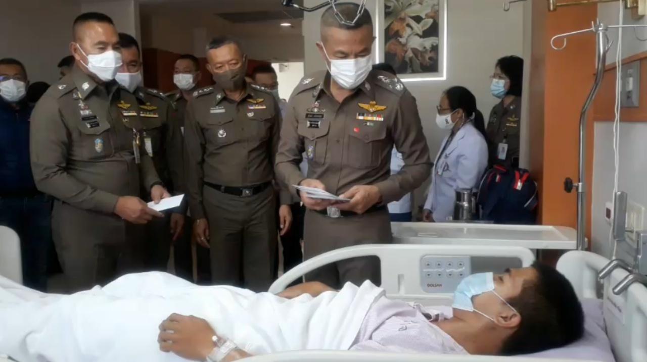 พล.ต.อ.สุวัฒน์ แจ้งยอดสุข ผบ.ตร. เข้าเยี่ยมตำรวจชุดควบคุมฝูงชน ได้รับบาดเจ็บจากการปฏิบัติหน้าที่กระชับพื้นที่สลายกลุ่มผู้ชุมนุม บริเวณด้านหน้าศาลหลักเมือง