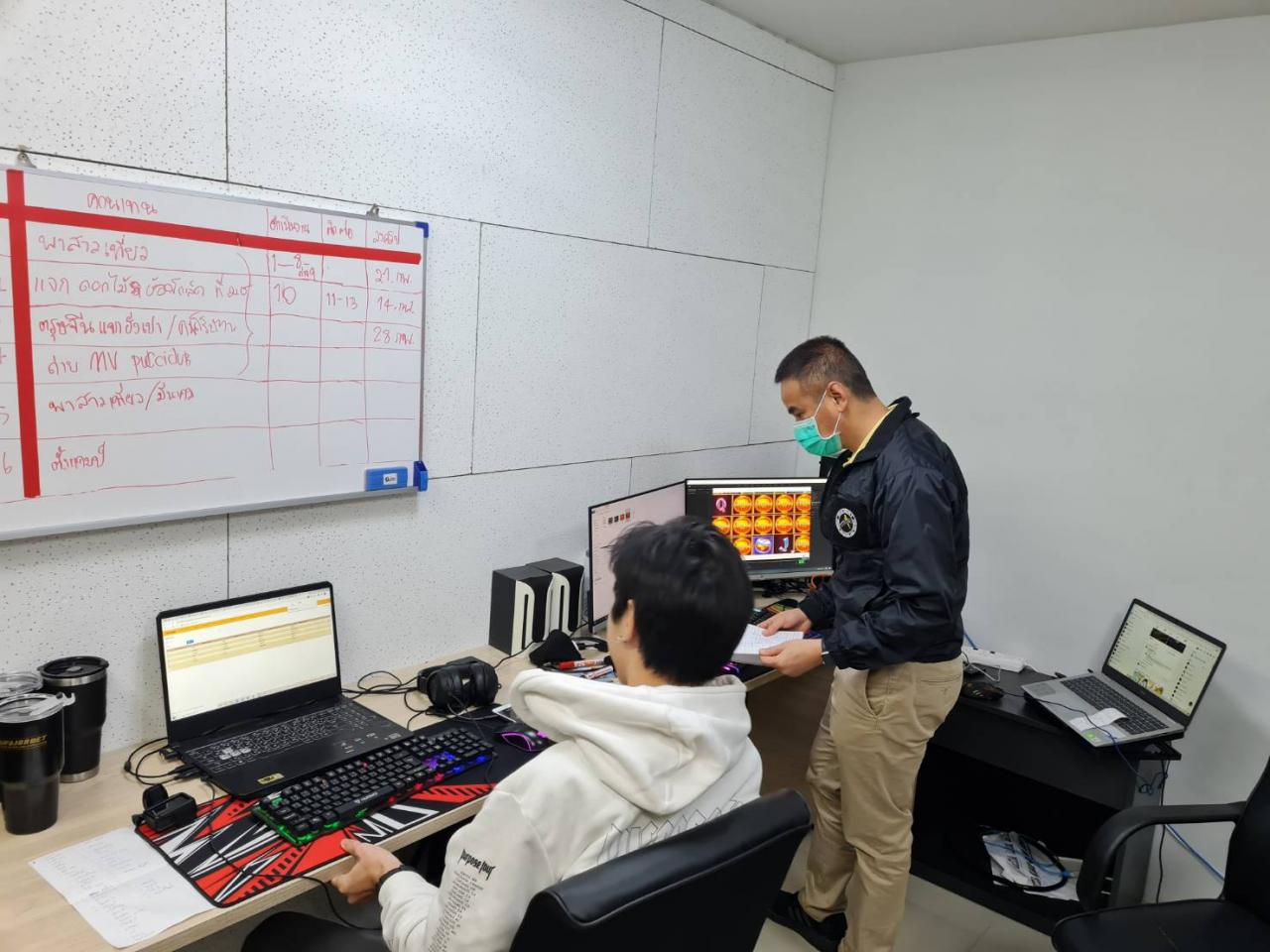 และจับกุมตัว นายตนุภัทร นุชพูน อายุ 18 ปี อยู่บ้านเลขที่ 419 หมู่ 10 ต.แม่เงิน อ.เชียงแสน จ.เชียงราย นายณัฐดนัย อินทวงค์ อายุ 18 ปี อยู่บ้านเลขที่ 159 หมู่ 10 ต.แม่เงิน อ.เชียงแสน จ.เชียงราย พร้อมของกลางคอมพิวเตอร์ตั้งโต๊ะจำนวน 2 ชุด นำตัวทั้งหมดดำเนินคดีข้อหา "ร่วมกันจัดให้มีการเล่น หรือทำอุบายล่อ ช่วยประกาศโฆษณาหรือชักชวนโดยทางตรงหรือทางอ้อมให้ผู้อื่นเข้าเล่นหรือเข้าพนันในการเล่นซึ่งมิได้รับอนุญาตจากเจ้าพนักงานหรือรับอนุญาตแล้วแต่เล่นพลิกแพลง หรือผู้ใดเข้าเล่นหรือเข้าพนันในการเล่นอันขัดต่อบทแห่งพระราชบัญญัตินี้ หรือกฎกระทรวง หรือข้อความในใบอนุญาต ตามพระราชบัญญัติการพนัน พ.ศ.2478 มาตรา 12"
