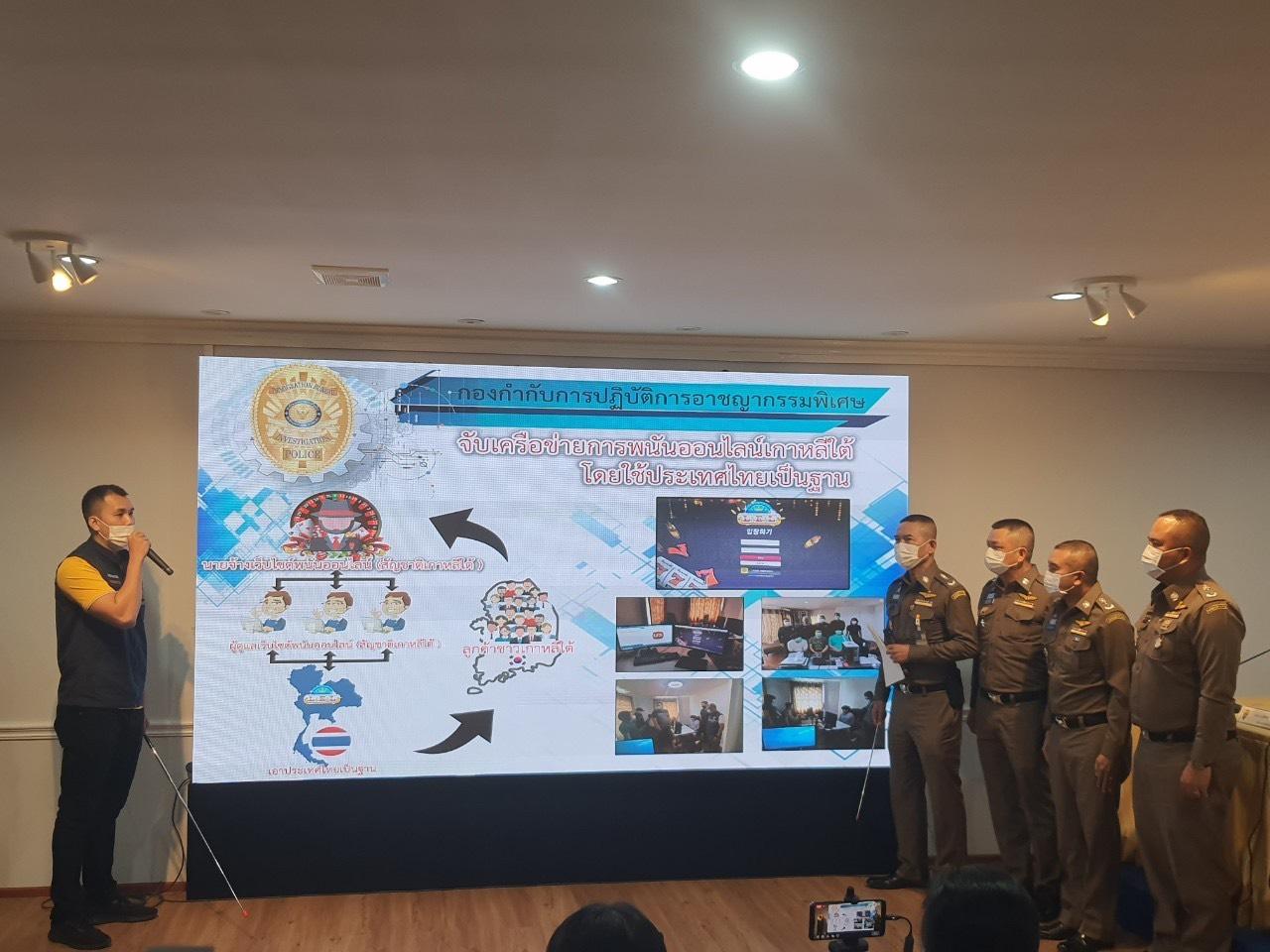 เมื่อวันที่ 18 ก.พ.64 ที่สำนักงานตรวจคนเข้าเมือง พล.ต.ท.สมพงษ์ ชิงดวง ผบช.สตม. พล.ต.ต.สิทธิชัย โล่กันภัย รอง ผบช.สตม. พล.ต.ต.อาชยน ไกรทอง รอง ผบช.สตม. พล.ต.ต.พันธนะ นุชนารถ ผบก.สส.สตม. แถลงจับชายชาวเกาหลี 3 คน หลังสืบทราบว่า ใช้สถานที่ดังกล่าวเป็นฐานเปิดให้มีการเล่นพนันออนไลน์ของประเทศเกาหลีใต้ ทั้งหมดรับสารภาพว่า ทำหน้าที่เป็นแอดมิน ดูแลการเงินเวลามีลูกค้าฝากถอน ตอบคำถามลูกค้า และดูแลระบบเว็บพนัน โดยได้รับการว่าจ้างจาก นายลี สัญชาติเกาหลีใต้ ให้เข้ามาทำงานในประเทศไทยมานานประมาณ 1 ปีแล้ว ได้รับค่าจ้างเป็นรายเดือน เดือนละ 1 แสนบาท โอนเงินเข้าบัญชีที่ประเทศเกาหลีใต้ และจะมีเงินเบี้ยเลี้ยงเมื่อทำงานที่ประเทศไทยอีก 30,000 บาท โดยจากการตรวจสอบพบมีเงินหมุนเวียนในเว็บพนันนี้ 2-3 ล้านบาทต่อวัน