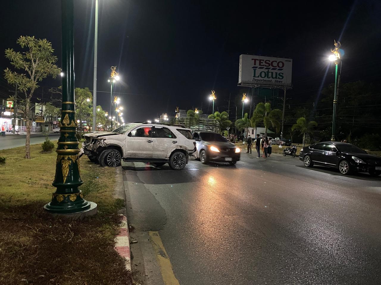 ส่วนรถยนต์โตโยต้า ฟอร์จูนเนอร์ คันดังกล่าว ได้เสียหลักขึ้นไปจอดอยู่บนเกาะกลางถนน สภาพด้านหน้าพังเสียหาย คนขับชื่อ นายกรมิษฐ์ สมบูรณ์ทรัพย์ อายุ 22 ปี เป็นชาว ต.ท่าช้าง อ.บางกล่ำ จ.สงขลา ได้รับบาดเจ็บด้วยเช่นกัน