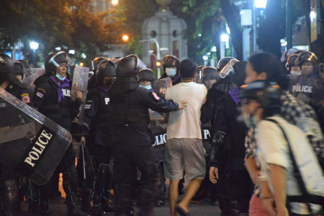 ตำรวจรวบตัวคนเมาป่วนพยายามขับรถฝ่าวงล้อมชุดควบคุมฝูงชน ที่ตรึงกำลังหน้าตรอกตึกดิน ถนนดินสอ ทำให้ชุลมุนเล็กน้อย จนท.จึงจับกุมชายคนดังกล่าวไปดำเนินคดี พร้อมลากรถไป สน.สำราญราษฎร์