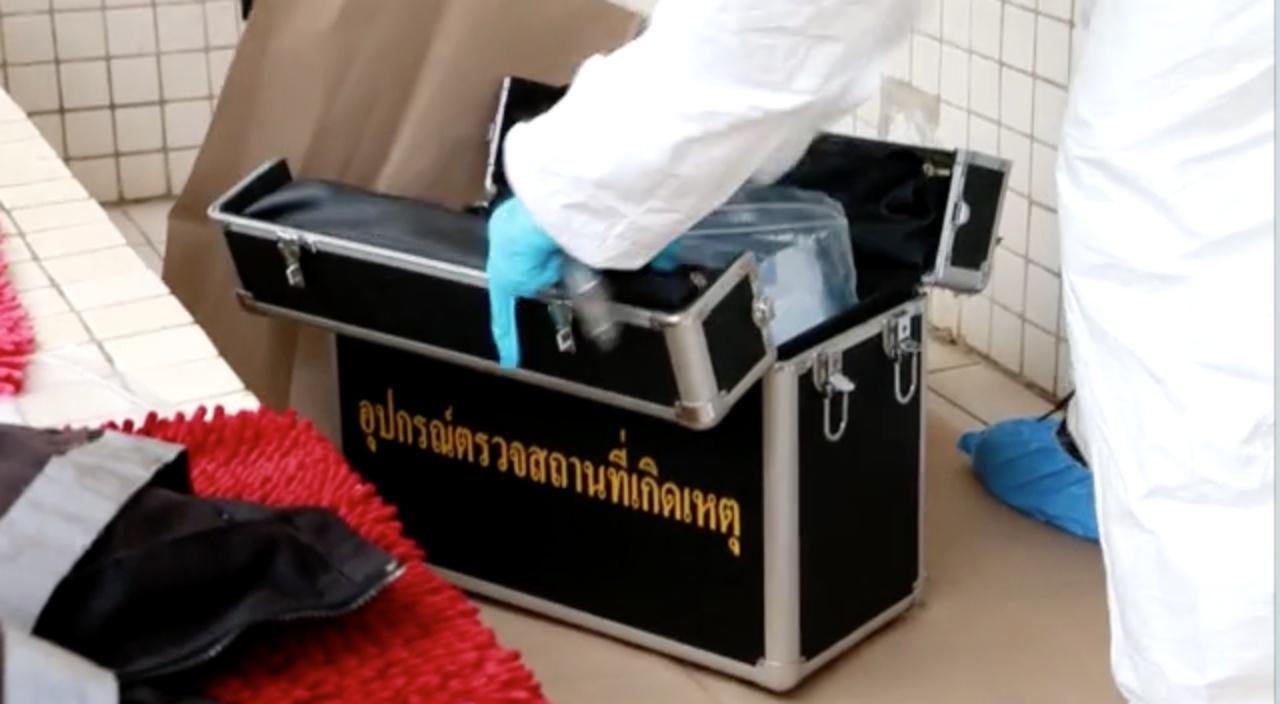 จากนั้น เจ้าหน้าที่พิสูจน์หลักฐาน พร้อมแพทย์นิติเวช ได้สวมชุดพีพีอี ป้องกันเชื้อโรค เข้าตรวจสอบ ในห้องพบชายร่างสันทัด นุ่งกางเกงขาสั้นสีคราม ไม่สวมเสื้อ นอนท่าตะแคงอยู่บนบนเตียง และมีถุงพลาสติกคุมครอบศีรษะไว้ โดยมีการต่อสายจากถังก๊าซไนโตรเจน เข้ารมก๊าซตนเองจนเสียชีวิต ภายในห้องไม่พบร่องรอยการต่อสู้ มีเพียงกระเป๋าผ้า 1 ใบ และทรัพย์สินส่วนตัวจำนวนหนึ่ง พร้อมด้วยโทรศัพท์มือถือจำนวน 4 เครื่อง รวมทั้งแผงยานอนหลับ 1 แผง ที่ถูกแกะทานตั้งไว้บนโต๊ะกระจก เจ้าหน้าที่ทำการเก็บรวบรวมหลักฐานสำคัญ และมีการตรวจหาเชื้อสารคัดหลั่งจากโพรงจมูกผู้ตาย คาดว่าน่าจะเสียชีวิตมาแล้วประมาณ 12-24 ช.ม.