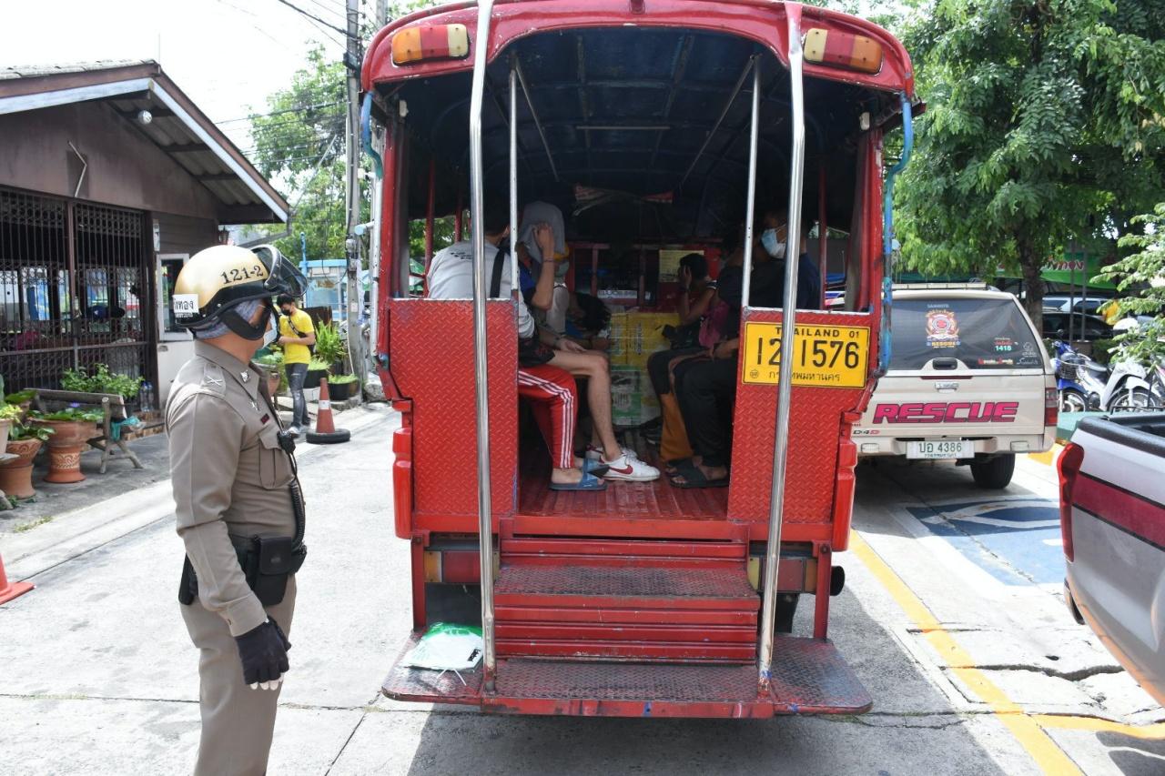 ที่ สน.วังทองหลาง เมื่อเวลา 14.00 น. วันที่ 24 พ.ค. พนักงานสอบสวน สน.วังทองหลาง ควบคุมผู้ต้องหา 55 คน ที่กระทำความผิดในข้อหาฝ่าฝืน พ.ร.บ.โรคติดต่อฯ และ พ.ร.ก.สถานการณ์ฉุกเฉินฯ, มีสารเสพติดในร่างกาย จากกรณีรวมกลุ่มกันมั่วสุมจัดปาร์ตี้สังสรรค์เสพยาติด ในสถานซาวน่า ซอยรามคำแหง 21 แยก 2 ขึ้นรถสองแถวจำนวน 3 คัน เพื่อนำตัวไปยังศาลแขวงพระนครเหนือ ซึ่งมีรถและกำลังตำรวจสายตรวจตามประกบหน้าหลังเพื่อป้องกันผู้ต้องหาหลบหนี