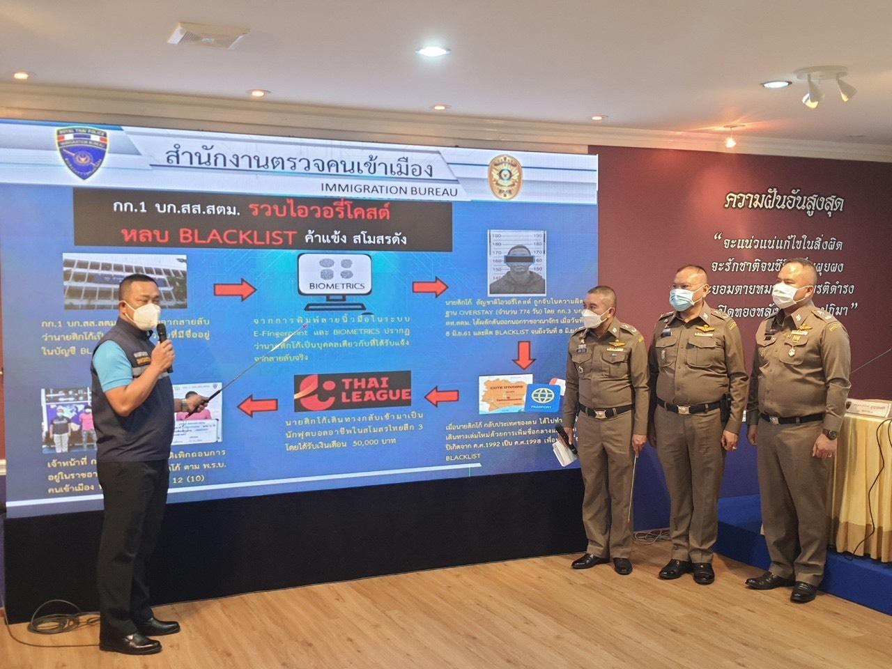 เจ้าหน้าที่ตำรวจ กก.1 บก.สส.สตม. ได้รับแจ้งจากสายลับว่า นายดิกโก้ อิบราฮิม อะบู สัญชาติไอวอรี่โคสต์ หนังสือเดินทางไอวอรี่โคสต์ เลขที่ 18AR52620 ซึ่งปัจจุบันเป็นนักฟุตบอลอาชีพตำแหน่งศูนย์หน้าของสโมสรดังในไทยลีก 3 มีพฤติกรรมน่าสงสัยว่า เข้ามาในประเทศไทยโดยฝ่าฝืน พ.ร.บ.คนเข้าเมือง พ.ศ.2522 กก.1 บก.สส.สตม. จึงได้นำข้อมูลดังกล่าวตรวจสอบในระบบ Biometrics จนทราบว่าบุคคลดังกล่าวพักอาศัยอยู่ที่คอนโดมิเนียมย่าน ต.บางพูด อ.ปากเกร็ด จ.นนทบุรี จึงได้ไปตรวจสอบยังสถานที่ดังกล่าวและเชิญตัวมาที่ กก.1 บก.สส.สตม. จากนั้นจึงได้นำตัวมาพิมพ์ลายนิ้วมือตรวจสอบในระบบ E-Fingerprint และ BIOMETRICS ผลปรากฏว่าลายพิมพ์นิ้วมือตรงกับนายดิกโก้ อิบราฮิม ซึ่งเคยถูก ตม.จ.สงขลา จับกุมเมื่อวันที่ 15 พ.ค. 61 ในความผิดฐาน เป็นบุคคลต่างด้าวอยู่ในราชอาณาจักรโดยการอนุญาตสิ้นสุด (จำนวน 774 วัน) และเป็นบุคคลห้ามเข้ามาในราชอาณาจักรตามคำสั่ง รมว.มหาดไทย ที่ 1/2558 ลงวันที่ 27 พ.ย. 58 เป็นเวลา 10 ปี นับตั้งแต่วันที่ 8 มิ.ย. 61 จนถึงวันที่ 8 มิ.ย. 71