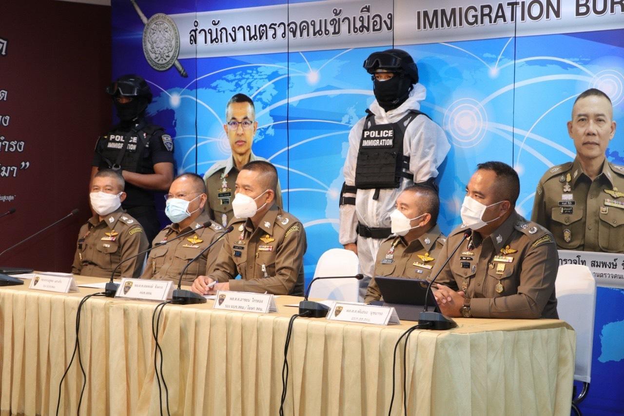 เมื่อวันที่ 28 พ.ค. 64 พล.ต.ท.สมพงษ์ ชิงดวง ผบช.สตม. พร้อมด้วย พล.ต.ต.ณฐพล แสวงกิจ รอง ผบช.สตม., พล.ต.ต.สิทธิชัย โล่กันภัย รอง ผบช.สตม., พล.ต.ต.อาชยน ไกรทอง รอง ผบช.สตม., พล.ต.ต.ศิลปคมณ์ เอี่ยมวงศ์ รอง ผบช.สตม., พล.ต.ต.พันธนะ นุชนารถ ผบก.สส.สตม., พ.ต.อ.สถิตย์ พรมอุทัย รอง ผบก.สส.สตม., พ.ต.อ.ชาติชาย ตันติวุฒิวร ผกก.1 บก.สส.สตม. ร่วมแถลงข่าวการจับกุมต่างชาติหลบหนีเข้าเมืองผิดกฎหมายและชาวจีนหลอกซื้อผลไม้จากชาวสวนภาคใต้