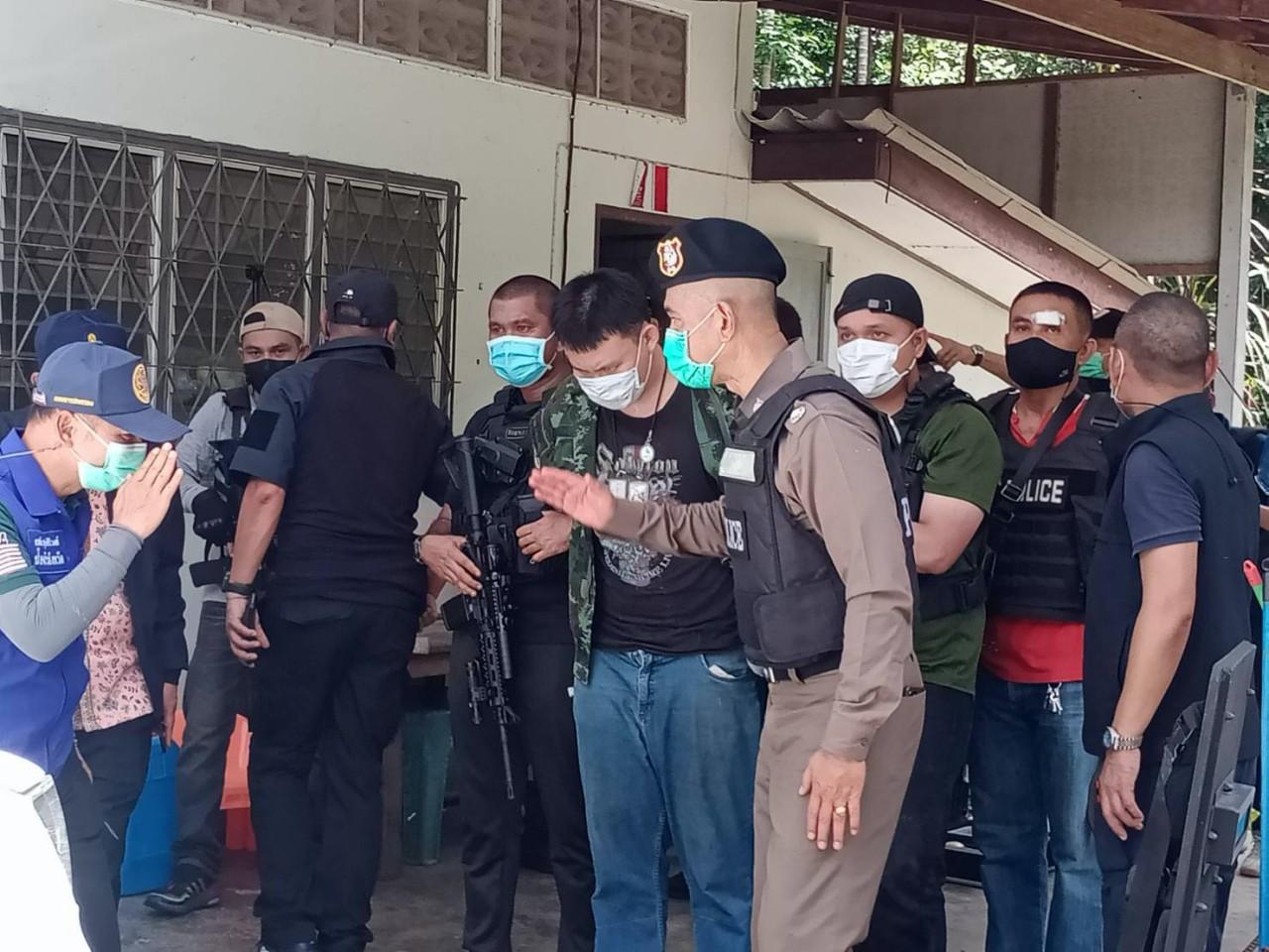 เมื่อวันที่ 24 มิ.ย.2564 พล.ต.ต.ยิ่งยศ เทพจำนงค์ โฆษกสำนักงานตำรวจแห่งชาติ เปิดเผยว่า ล่าสุดเมื่อเวลา 12.20 น. ที่ผ่านมา เจ้าหน้าที่ตำรวจสามารถควบคุมตัว นายกวิน แสงนิลกุล อดีตทหารหน่วยรบพิเศษ ของกองทัพบก อายุ 23 ปี ไว้ได้โดยไม่มีบุคคลใดได้รับอันตรายเพิ่มเติม และได้ควบคุมตัวผู้ต้องหาไปที่ สภ.ปากน้ำระนอง โดยมี พล.ต.อ.สุชาติ ธีระสวัสดิ์ รองผู้บัญชาการตำรวจแห่งชาติ ทำการสอบปากคำด้วยตนเอง และเมื่อเสร็จสิ้นขั้นตอนดังกล่าว จะนำตัวผู้ต้องหากลับมาดำเนินคดีในท้องที่เกิดเหตุตามกระบวนการกฎหมาย