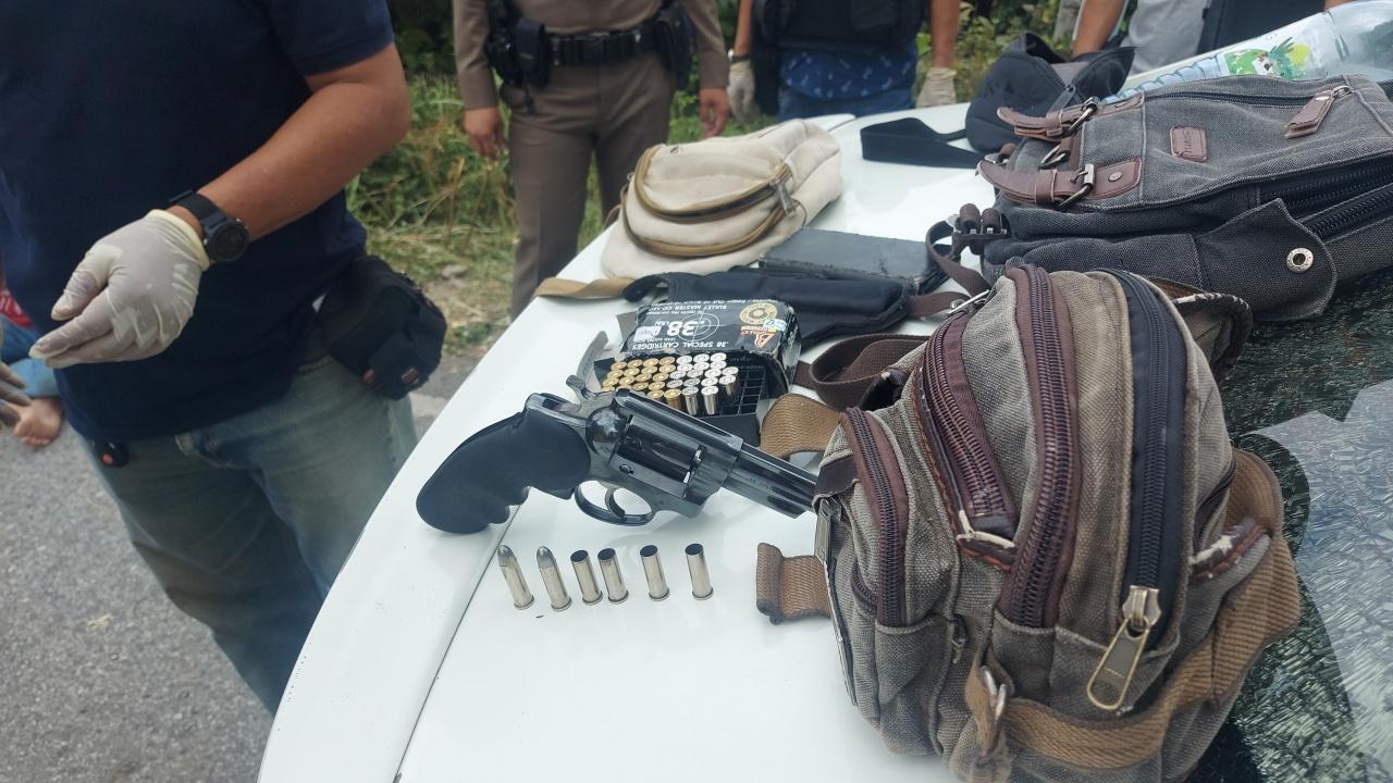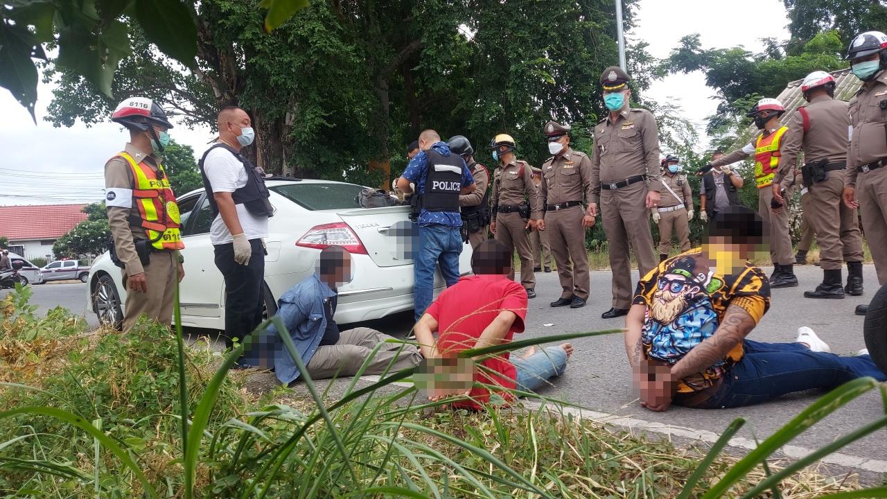 จากการตรวจสอบ ทราบชื่อคนขับ คือ นายวรภัทร ภัทรภูวเดช อายุ 47 ปี เป็นชาวอำเภอบ้านตาก ย้ายทะเยียนบ้านไปอยู่ จ.ปทุมธานี เป็นหัวหน้าแก๊งเป็นคนขับรถและคนยิงตำรวจ พร้อมด้วยลูกน้องคนสนิททราบชื่อ คือ นายสมชาย แสนเปา อายุ 21 ปี และนายวิศวะ วงศ์จำรัส อายุ 25 ปี ทั้งสองเป็นชาวอำเภอบ้านตาก จังหวัดตาก เจ้าหน้าที่ทำการตรวจค้นภายในรถยนต์พบยาบ้าจำนวนหนึ่ง ปืนพกสั้นขนาด .38 มม. ยี่ห้อรูเกอร์ ในรังเพลิง พบปลอกกระสุนปืนที่ยิงไปแล้ว 4 นัดและที่ยังไม่ได้ยิง 2 นัด นอกจากนี้ ยังพบกระสุนปืนอีกจำนวนกว่า 37 นัด เจ้าหน้าที่จึงยึดไว้เป็นหลักฐาน