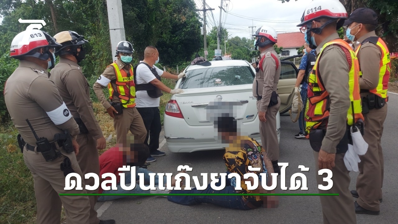 ตร.เมืองตาก ตามสกัดเก๋งต้องสงสัยร่วม ตร.โกสัมพี คนร้ายเห็นตำรวจชักปืนยิงใส่ 4 นัด เฉี่ยวหัวนายดาบนิดเดียว ก่อน จนท.ยิงสวนไปโดนหม้อน้ำแตกรถพังจนมุม ถูกรวบได้ 3 คนพร้อมยาบ้า เผยมีประวัติโชกโชน