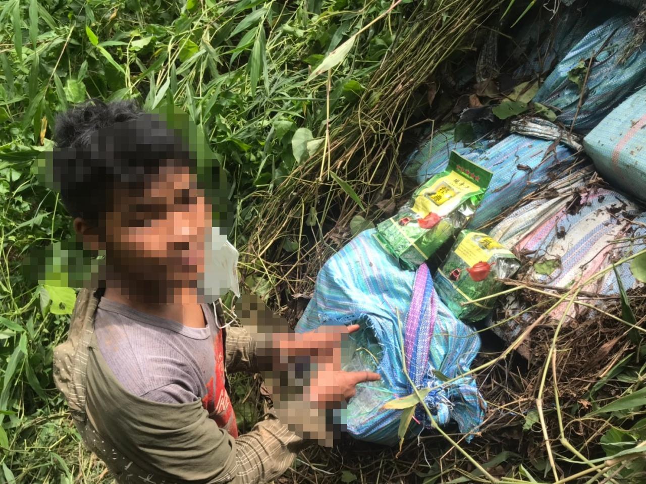 ต่อมาเวลา 15.00 น. พล.ต.นฤทธิ์ ถาวรวงษ์ ผบ.กองกำลังผาเมือง และ ผอ.ศูนย์ปฏิบัติการป้องกันและปราบปรามยาเสพติดกองกำลังผาเมือง กล่าวว่า จากการสอบสวนนายอาเคอให้การว่า ก่อนเกิดเหตุเมื่อเวลา 03.00 น. ได้แบกกระสอบยาไอซ์ข้ามชายแดนมาพร้อมกับเพื่อนชาวเมียนมารวม 11 คน เป็นคาราวาน มีคนหนึ่งแบก 2 กระสอบ ออกจากบ้านบาลา จ.ท่าขี้เหล็ก ตรงข้าม บ.ผาฮี้ ต.ผาฮี้ อ.แม่สาย ลัดเลาะมาตามป่าถึงที่เกิดเหตุได้นำมาซุกไว้ในพงป่าละเมาะ จากนั้นชาย 10 คนได้เดินกลับข้ามชายแดนไป ส่วนตนเองมีหน้าที่นั่งเฝ้าให้ผู้มารับอีกทอดหนึ่ง โดยได้ราคาค่างจ้างแบกกระสอบละ 15,000 บาท ค่าจ้างนั่งเฝ้าอีก 5,000 บาท เมื่อส่งมอบของเสร็จกลับไปจึงจะได้รับเงิน แต่รอจนกระทั่งเวลา 11.30 น. ก็ไม่มีคนมารับตามนัด และเจ้าหน้าที่ได้มาพบและทำการจับกุม