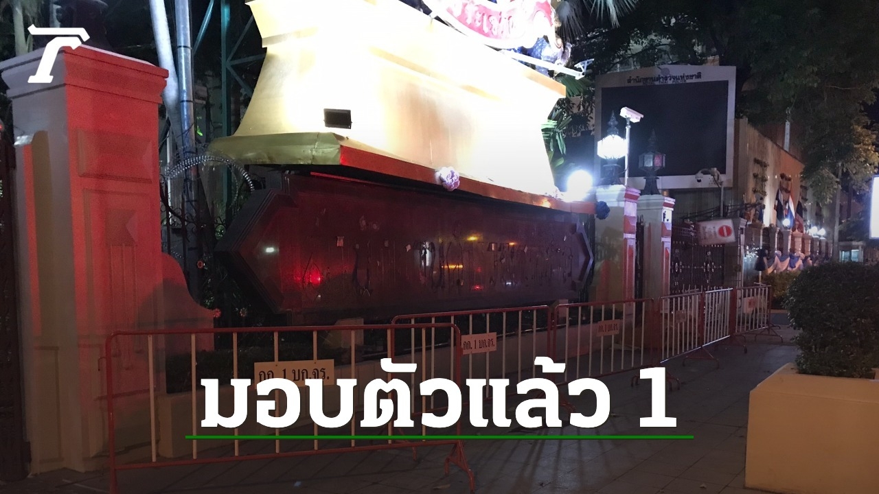 มือรื้อทำลายป้ายสำนักงานตำรวจแห่งชาติจนได้รับความเสียหาย เดินทางเข้ามอบตัวกับพนักงานสอบสวน สน.ปทุมวัน แล้ว 1 ราย