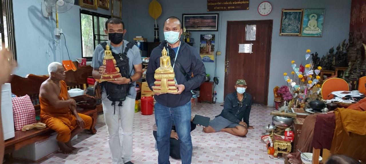 สำหรับพระพุทธรูปไม้ที่ตามคืนมาได้เป็นพระพุทธรูปไม้เก่าแก่ ชาวบ้านพบอยู่ใต้พระประทานในโบสถ์อายุกว่า 100 ปี จำนวน 11 องค์ แล้วเอามาตั้งไว้ภายในวัด ต่อมาเมื่อประมาณ 15 ปีที่ผ่านมา พระพุทธรูปทั้งหมดได้หายไป แล้วได้คืนมาจากกลุ่มโจรกรรมพระข้ามประเทศที่ สน.พระประแดง กรุงเทพฯ และมาหายครั้งสองเมื่อ 13 ส.ค. กระทั่งมีการจับกุมได้อีกครั้ง.