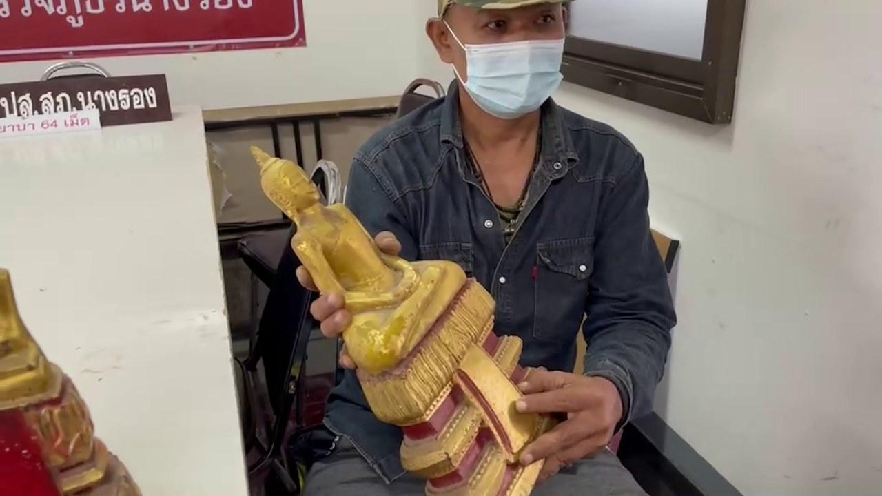รวบแล้ว มือขโมยพระพุทธรูปไม้เก่าแก่ วัดใหม่เรไรทอง ที่ อ.นางรอง สารภาพหน้าตาเฉยอ้างเป็นของบรรพบุรุษ ไม่ได้ขโมย เพราะเปิดหน้าเข้าไปหยิบเอา พบก่อเหตุติดคุกมาแล้วในคดีเดียวกัน ตำรวจตั้ง 2 ข้อหา