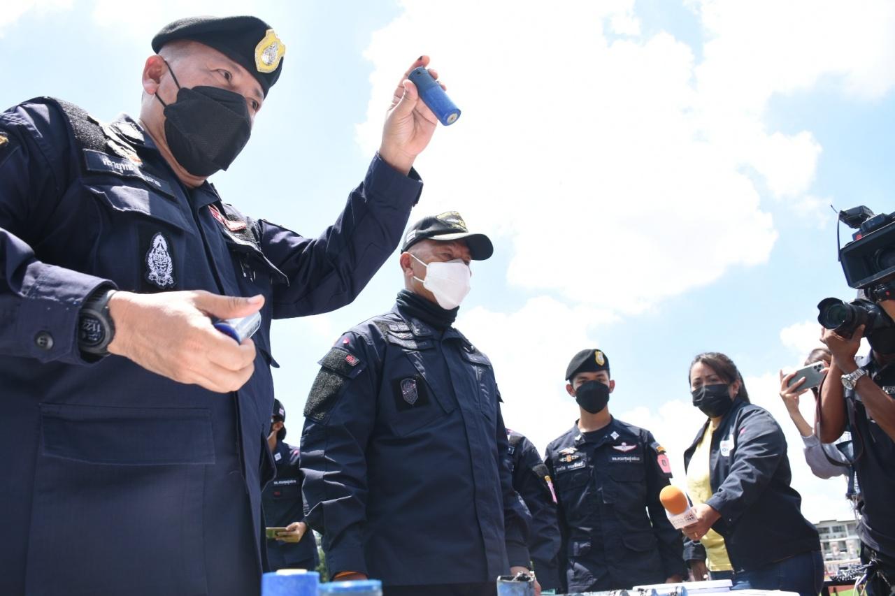 พล.ต.ท.ภัคพงศ์ กล่าวว่า การสาธิตยิงแก๊สน้ำตาวันนี้ เพื่อให้เห็นว่าการปฏิบัติหน้าที่ของตำรวจ เราได้ใช้อุปกรณ์ควบคุมฝูงชนที่ได้รับอนุมัติตามมติ ครม. ซึ่งอุปกรณ์ที่ใช้ไม่ถึงแก่ชีวิต โดยวันนี้จะให้ดูกระสุนแก๊สที่ใช้ในปัจจุบันว่าลักษณะก่อนและหลังยิงเป็นอย่างไร และลักษณะกระสุนแก๊สแบบยิง ยืนยันว่าแก๊สน้ำตาไม่เป็นอันตรายถึงชีวิต ซึ่งตำรวจคิดว่าหากไม่ทำอะไร จะมีความรุนแรงกว่านี้