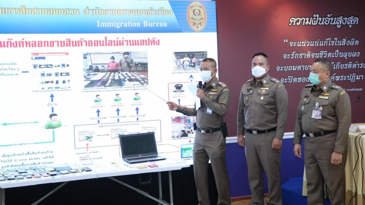 สืบ สตม. แถลงโชว์รวบแก๊งต่างชาติ ฟอกเงินยาเสพติดข้ามชาติ หลอกขายของออนไลน์ ลวงเหยื่อตุ๋นเงินลงทุน และแก๊งทวงหนี้โหดมังกรจีนผ่านแอปพลิเคชันชื่อ "พลูตัส แค็ท โปร"
