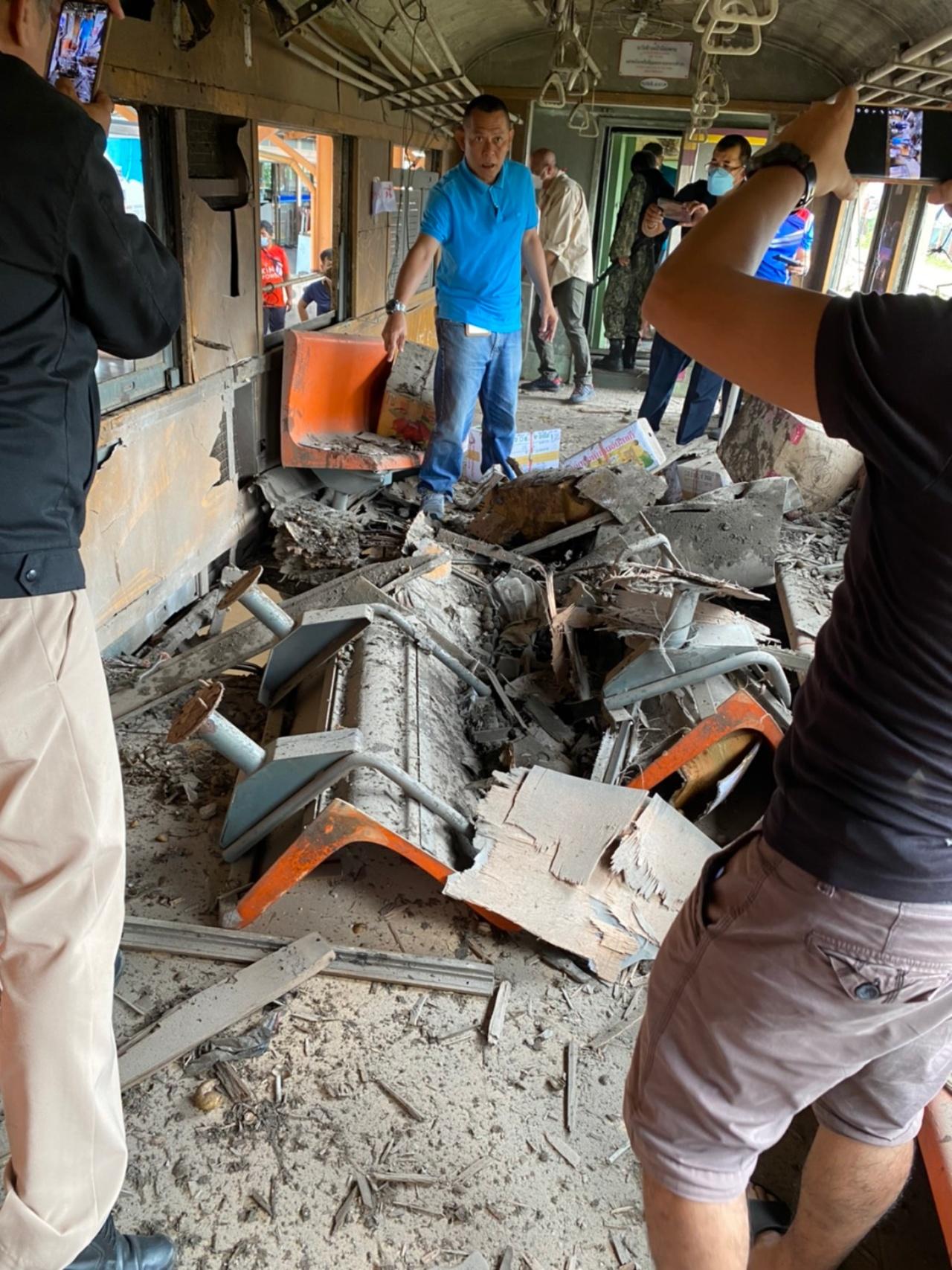ต่อมาเจ้าหน้าที่ได้เดินทางไปยังสถานีรถไฟตันหยงมัส เพื่อตรวจสอบความเสียหายของตู้โบกี้บรรทุกสินค้าตู้ที่ 5 ที่ พขร.ขบวนรถไฟได้นำไปจอดไว้ที่สถานีรถไฟตันหยงมัส พบว่ามีร่องรอยถูกสะเก็ดระเบิดที่บริเวณกลางโบกี้ได้รับความเสียหาย จนพื้นไม้ที่ปูทับไว้กับบริเวณแนวทางเดิน ถูกสะเก็ดระเบิดเป็นรูโหว่ขนาดใหญ่ และสะเก็ดระเบิดได้กระเด็นสร้างความเสียหายถึงบริเวณหลังคาด้านในที่ติดตั้งพัดลมและหลอดไฟฟ้าส่องสว่าง โดยมีเศษซากชิ้นส่วนของเหล็กเส้นตัดสั้นจำนวนหนึ่งตกอยู่ นอกจากนี้ที่บริเวณข้างตู้โบกี้สินค้ามีร่องรอยถูกกระสุนปืนสงครามจำนวนหนึ่ง เจ้าหน้าที่จึงได้เก็บรวบรวมไว้เป็นหลักฐาน