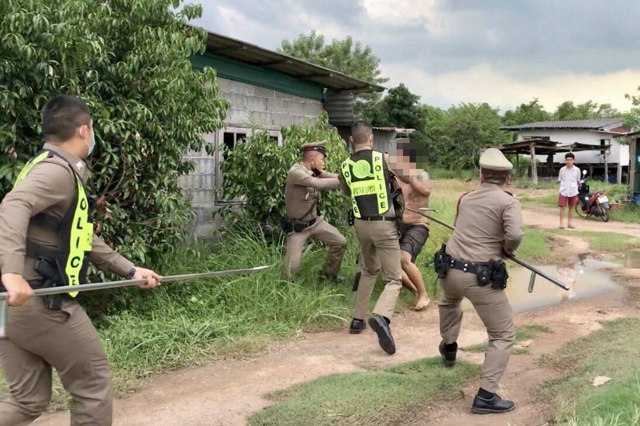 หนุ่มศีขรภูมิคลั่งอาละวาดกระโดดถีบ จยย.เพื่อนบ้านที่ปากพลี และเข้าทำร้าย ตร.ที่รับแจ้งมาระงับเหตุ สุดท้าย จนท.ต้องใช้ไม้ง่ามเข้าล็อกตัวให้อาสากู้ภัยช่วยจับ ส่ง รพ.นครนายก คาดเครียดจัด