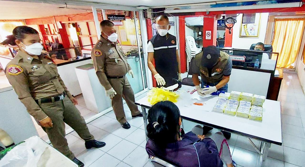 จนมาถึงโบกี้ที่ 13 เลขที่นั่ง 30 ขณะเข้าจอดสถานีรถไฟหัวหิน พบผู้โดยสารเป็นหญิงท่าทางมีพิรุธเมื่อเห็นเจ้าหน้าที่จึงขอตรวจค้น ทราบชื่อว่า น.ส.ธนัชพร ตรีเดช อายุ 26 ปี ชาว ต.โพธิ์ศรีสำราญ อ.โนนสะอาด จ.อุดรธานี ภายในกระเป๋าสะพายสีเขียวที่วางข้างตัว พบยาบ้ามัดละ 10 ถุง รวม 48,480 เม็ด คิดเป็นมูลค่าเกือบ 5 ล้านบาท ซุกซ่อนปนกับเสื้อผ้า จึงนำตัวมาสอบสวน