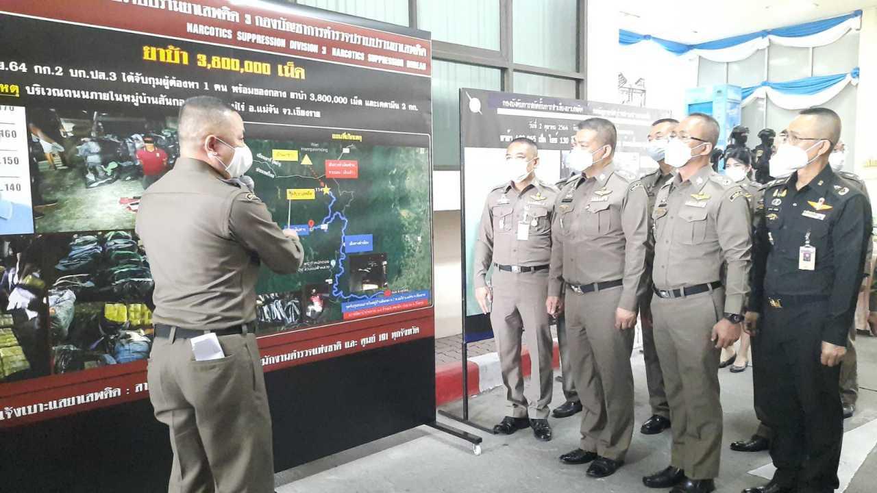 ตำรวจ ปส. แถลงจับกุมยาเสพติด 2 คดีได้ผู้ต้องหา 5 ราย ยึดของกลางยาบ้ากว่า 4 ล้านเม็ด ไอซ์ 130 กก. เคตามีน 2 กก. รถยนต์ 4 คัน ปืน 4 กระบอก พร้อมกระสุนเพียบ โดยขนจากภาคเหนือและอีสานมาส่งภาคกลาง