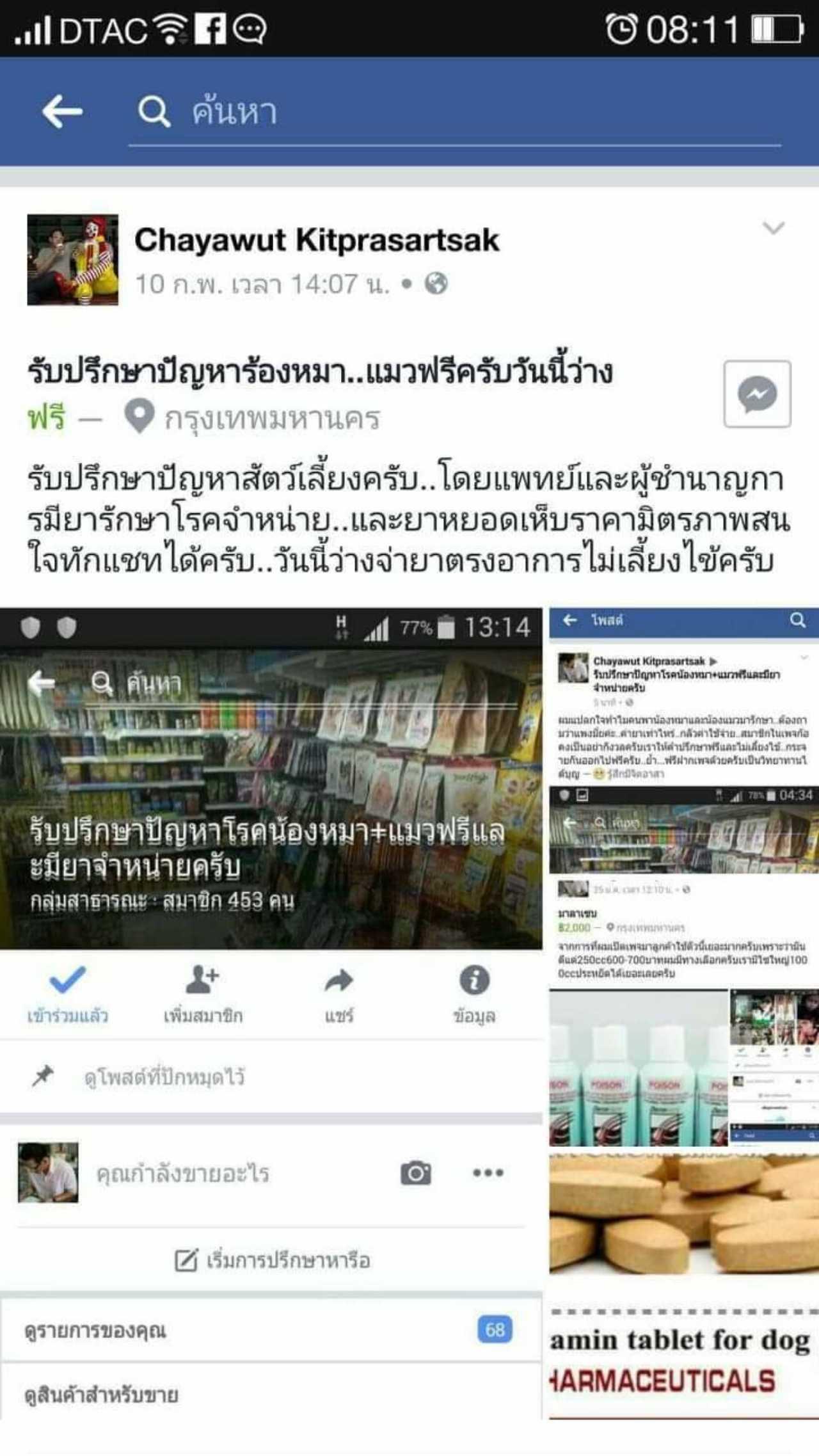 สืบเนื่องจากนายชยาวุธ มีพฤติกรรม อ้างตัวเป็นสัตวแพทย์ โดยใช้บัญชีเฟซบุ๊ก ชื่อว่า Chayawut Kitprasartsak ลงประกาศขายยารักษาหมา-แมว พร้อมให้คำปรึกษาการรักษาฟรี ทำให้มีผู้หลงเชื่อเป็นจำนวนมาก แต่หลังจากที่ผู้เสียหายสั่งจองยาและจ่ายเงินไปแล้ว จำนวน 16,050 บาท กลับไม่ได้รับสินค้าแต่อย่างใด และไม่สามารถติดต่อกับผู้ต้องหาได้อีกเลย ผู้เสียหายเข้าแจ้งความตำรวจ สน.บางโพงพาง เบื้องต้นพบ มีผู้ตกเป็นเหยื่ออีกหลายราย ความเสียหายร่วมกันหลายหมื่นบาท นอกจากนี้ผู้ต้องหาเคยใช้เฟซบุ๊กหลอกขายเครื่องใช้ไฟฟ้าแล้วปิดเพจหนีมาแล้ว จนกระทั่งตามจับกุมตัวได้ดังกล่าว