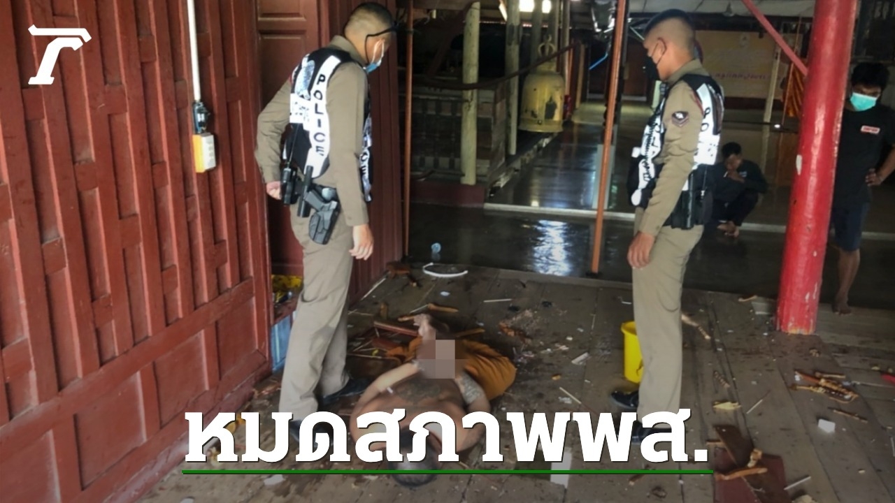 พระหนุ่มเสพยาเมาแล้วคลั่ง ควงไม้คมแฝกทุบทำลายข้าวของในวัด ตำรวจไปถึงยังท้าทาย สุดท้ายต้องใช้ปืนช็อตไฟฟ้ายิงสยบ นำตัวไปสึกส่งดำเนินคดี