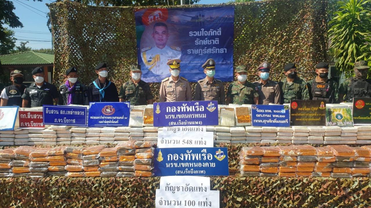 เมื่อวันที่ 25 ตุลาคม 2564 ที่สถานีเรือบ้านแพง (นรข.บ้านแพง) พลเรือตรี สมบัติ จูถนอม ผู้บัญชาการหน่วยเรือรักษาความสงบเรียบร้อยตามลำแม่น้ำโขง (ผบ.นรข.) พร้อมด้วย น.อ.พรภิรมย์ ยศบุญ ผบ.นรข.เขตนครพนม พ.ต.อ.สุกฤษณ์ ข้อร่วมคิด ผกก.สส.ภ.จว.บึงกาฬ นาวาโท เฉลิมชาติ พริกบุญจันทร์ หัวหน้าสถานีเรือบ้านแพง น.ต.การันต์ มินวงศ์ หัวหน้าสถานีบึงกาฬ ร่วมกับ ทหารชุดสกัดกั้นกองกำลังสุรศักดิ์มนตรี ทหารพรานที่ 2107 ตำรวจ ตชด.244 สภ.เหล่าหลวง บึงโขงหลง และหน่วยงานที่เกี่ยวข้อง ร่วมกันแถลงข่าวการตรวจยึดกัญชาแห้งอัดแท่งเกรดเอ ที่ตรวจยึดได้ในพื้นที่จังหวัดบึงกาฬ จำนวน 648 แท่ง น้ำหนักประมาณ 648 กิโลกรัม มูลค่าราว 19 ล้านบาท