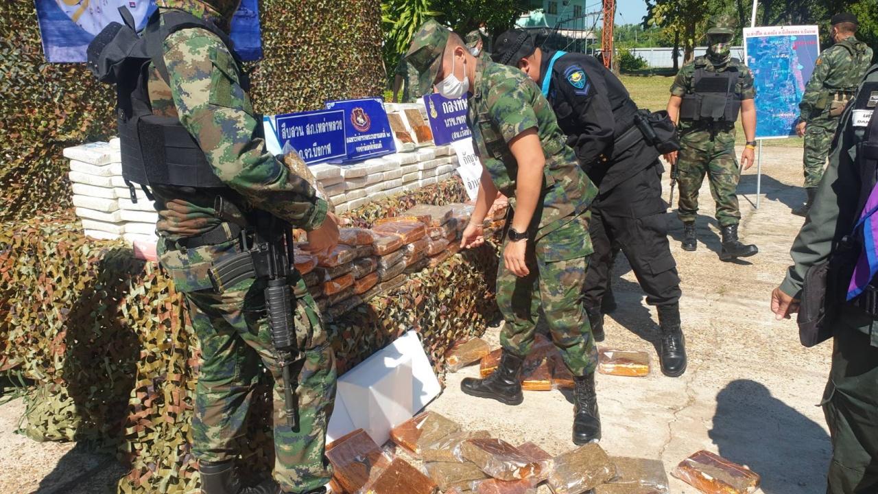 นรข.แถลงตรวจยึดกัญชาแห้งอัดแท่งเกรดเอ น้ำหนักประมาณ 648 กิโลกรัม มูลค่าราว 19 ล้านบาท กลุ่มผู้กระทำผิดสามารถหลบหนีไปได้