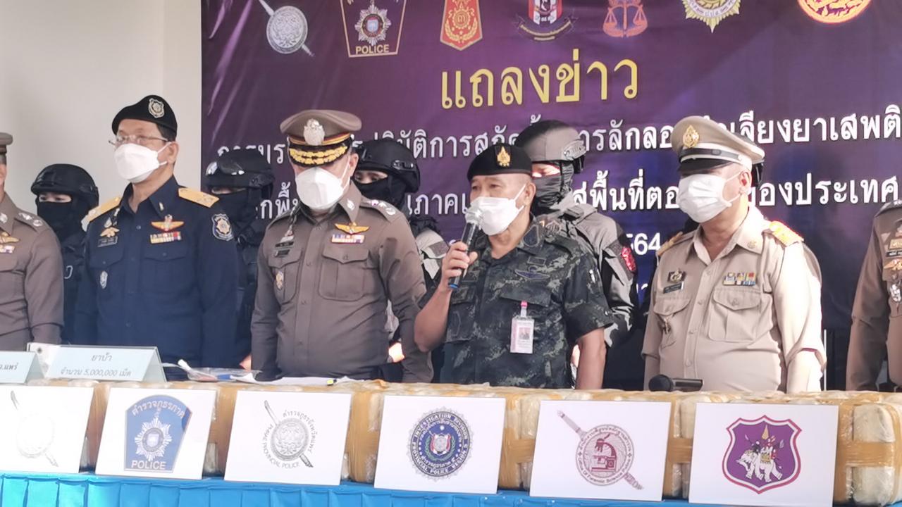 เมื่อเวลา 08.30 น. วันที่ 27 ต.ค. 64 ที่สำนักงานป้องกันและปราบปรามยาเสพติดภาค 5 จ.เชียงใหม่ พล.ต.ท.ปิยะ ต๊ะวิชัย ผบช.ภ.5 ร่วมกับ นายไกรเลิศ ดาวเรือง ผอ.ป.ป.ส.ภาค 5, พล.ต.ต.พฤทธิพงษ์ ประยูรศิริ รอง ผบช.ภ.5, พล.ต.ต.วีรชน บุญทวี รอง ผบช.ภ.5 พร้อมด้วยเจ้าหน้าที่ทหาร และฝ่ายปกครอง ร่วมแถลงผลการจับกุมยาเสพติดรายสำคัญ สกัดกั้นการลำเลียงยาเสพติด "กลุ่มชนเผ่าชายแดนภาคเหนือ" โดยมีผลการจับกุมตัว นายประจวบ หรือเป๋อจ๋อ วิสุทธิ์บัณฑิต อายุ 28 ปี ที่อยู่ 97 บ้านร่มฟ้าไทย หมู่ที่ 9 ต.ตับเต่า อ.เทิง จ.เชียงราย พร้อมของกลางยาบ้าประมาณ 5,000,000 เม็ด และรถยนต์กระบะ ยี่ห้อโตโยต้า รุ่นไฮลักซ์ วีโก้ สีบรอนซ์ทอง หมายเลขทะเบียน กบ 961 เชียงราย จำนวน 1 คัน ดำเนินคดีในข้อหา "มียาเสพติดให้โทษประเภท 1 (เมทแอมเฟตามีน หรือยาบ้า) ไว้ในครอบครองเพื่อจำหน่ายโดยผิดกฎหมาย"