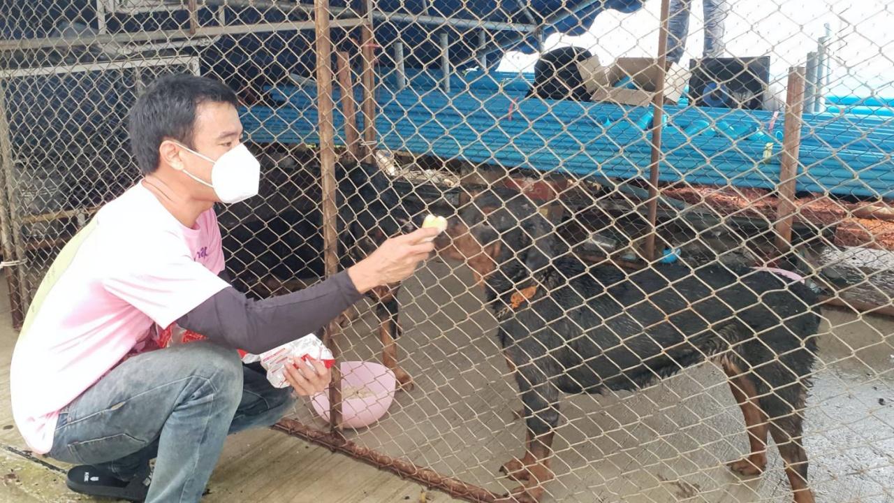 เจ้าของร็อตไวเลอร์ 6 ตัว นำอาหารมาให้สุนัขที่ถูกนำมาขังกรงไว้ที่ อบต. หลังเกิดกรณีไล่กัดเพื่อนบ้าน บอกคงต้องอยู่อย่างนี้ไปก่อน เพราะไม่มีเงินทำรั้วกั้น ด้านคู่กรณีเผยตั้งแต่โดนกัด เจ้าของหมายังไม่มาเจรจาใดๆ แต่ไม่เป็นไร เพราะไปแจ้งความไว้แล้ว