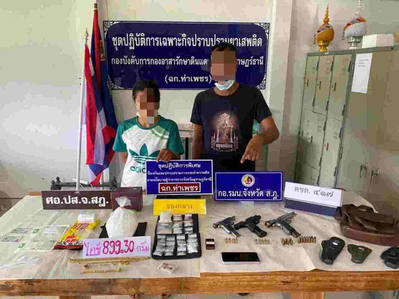 รายงานข่าวแจ้งว่า ชุดจับกุมสืบทราบมาว่า ทั้งคู่มีพฤติกรรมลักลอบขายยาเสพติดในพื้นที่ อ.พุนพิน และอำเภอใกล้เคียง จึงได้ขยายผลจับกุมดังกล่าว.