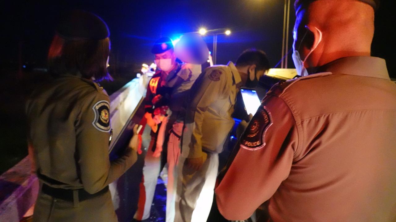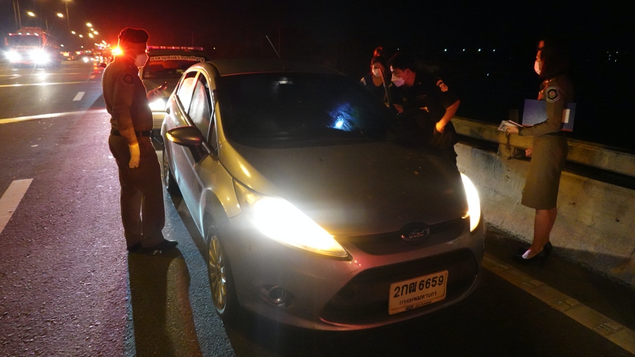 ทางด้าน พ.ต.ท.หญิงจีรนันท์ ทองช่างเหล็ก สว.(สอบสวน)ส.ทล.1 กก.8บก.ทล.ได้มาตรวจที่เกิดเหตุ พร้อมประสาน ร.ต.อ.จตุพร บุญประสงค์ รอง สว.(สอบสวน) สภ.บางบ่อ มาร่วมตรวจสอบ ขณะที่เจ้าหน้าที่มูลนิธิร่วมกตัญญูยังคงเร่งค้นหาร่าง แต่ยังไม่พบ เนื่องจากมีอุปสรรคในเรื่องกระแสน้ำและความมืด อีกทั้งยังมีตอไม้จำนวนมากอยู่ใต้น้ำ