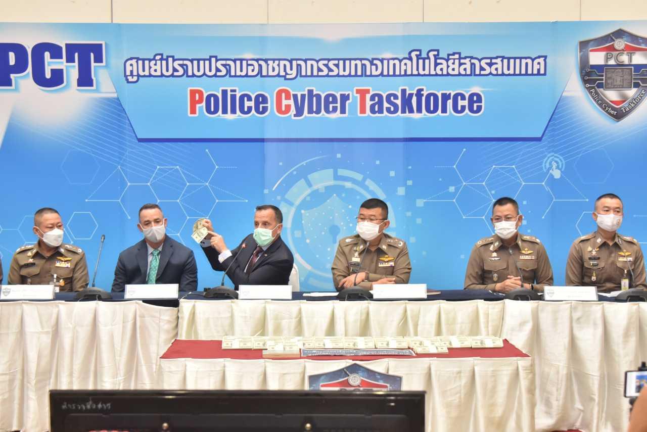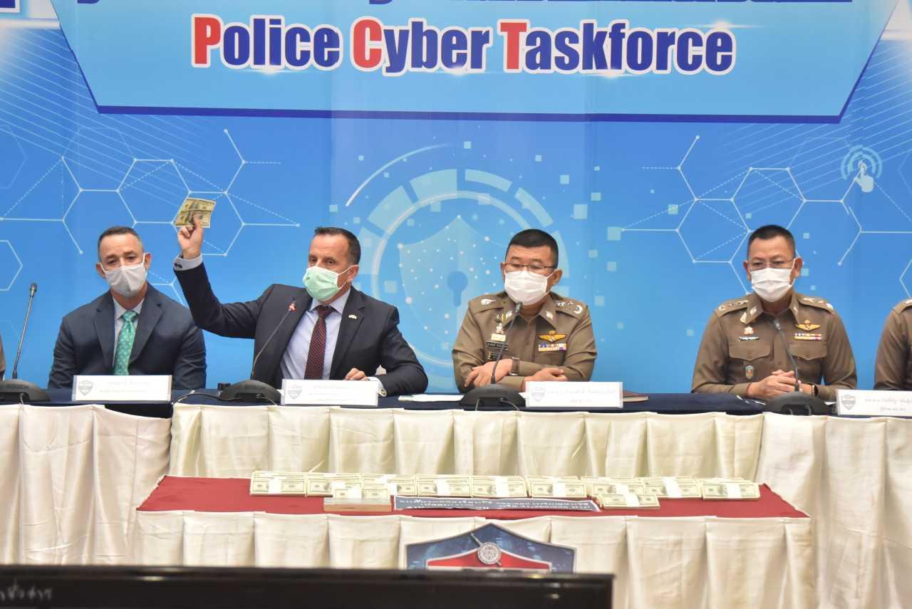 สำนักงานตำรวจแห่งชาติ เมื่อเวลา 11.30 น. วันที่ 18 พ.ย. 2564 พล.ต.อ.ดำรงศักดิ์ กิตติประภัสร์ รองผบ.ตร. ในฐานะผู้อำนวยการศูนย์ปราบปรามอาชญากรรมทางเทคโนโลยีสารสนเทศ สำนักงานตำรวจแห่งชาติ (ศปอส.ตร.) หรือ PCT นายคริสโตเฟอร์ โรห์ดี้ (Mr.Christopher Rohde) ผู้ช่วยทูต/หัวหน้าสำนักงาน U.S. Secret Service ประจำสำนักงานกรุงเทพฯ ร่วมกันแถลงผลการสืบสวนขยายผลการจับกุมขบวนการผลิตธนบัตรดอลลาร์สหรัฐปลอม โดยสามารถจับกุมนายทุนและผู้ร่วมขบวนการ พร้อมยึดแบงก์ดอลลาร์ปลอมได้กว่า 10,000 ฉบับ คิดเป็นเงินไทยกว่า 30,000,000 บาท พร้อมบุกทลายโรงพิมพ์ได้อีก 1 แห่ง