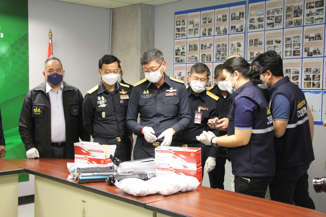 ขณะเดียวกันเมื่อเวลา 22.30 น. (26 พ.ย.) กรมศุลกากรร่วมกับชุดปฏิบัติการ AITF (AIRPORT INTERDICTION TASK FORCE) ร่วมกันตรวจสอบพัสดุไปรษณีย์ลงทะเบียนระหว่างประเทศ ต้นทางประเทศไทย ปลายทางประเทศออสเตรเลีย สำแดง (แสดง) สินค้าเป็น Toner cartridge ผลการตรวจสอบพบ ยาเสพติดให้โทษประเภท 1 ไอซ์ (เมทแอมเฟตามีน) ลักษณะเป็นเกร็ดขาวขุ่น ซุกซ่อนในตลับหมึกพิมพ์ จำนวน 20 กล่อง น้ำหนักรวมสิ่งห่อหุ้มประมาณ 4,270 กรัม มูลค่ากว่า 3 ล้านบาท อันเป็นความผิดตาม มาตรา 244 ประกอบมาตรา 166 และมาตรา 252 แห่งพระราชบัญญัติศุลกากร พ.ศ. 2560 และพระราชบัญญัติยาเสพติดให้โทษ พ.ศ. 2522 จึงได้ดำเนินการจับกุมพร้อมทั้งประสานข้อมูลกับหน่วยงานที่เกี่ยวข้องเพื่อขยายผล และส่งคดีเพื่อดำเนินการตามกฎหมายต่อไป.