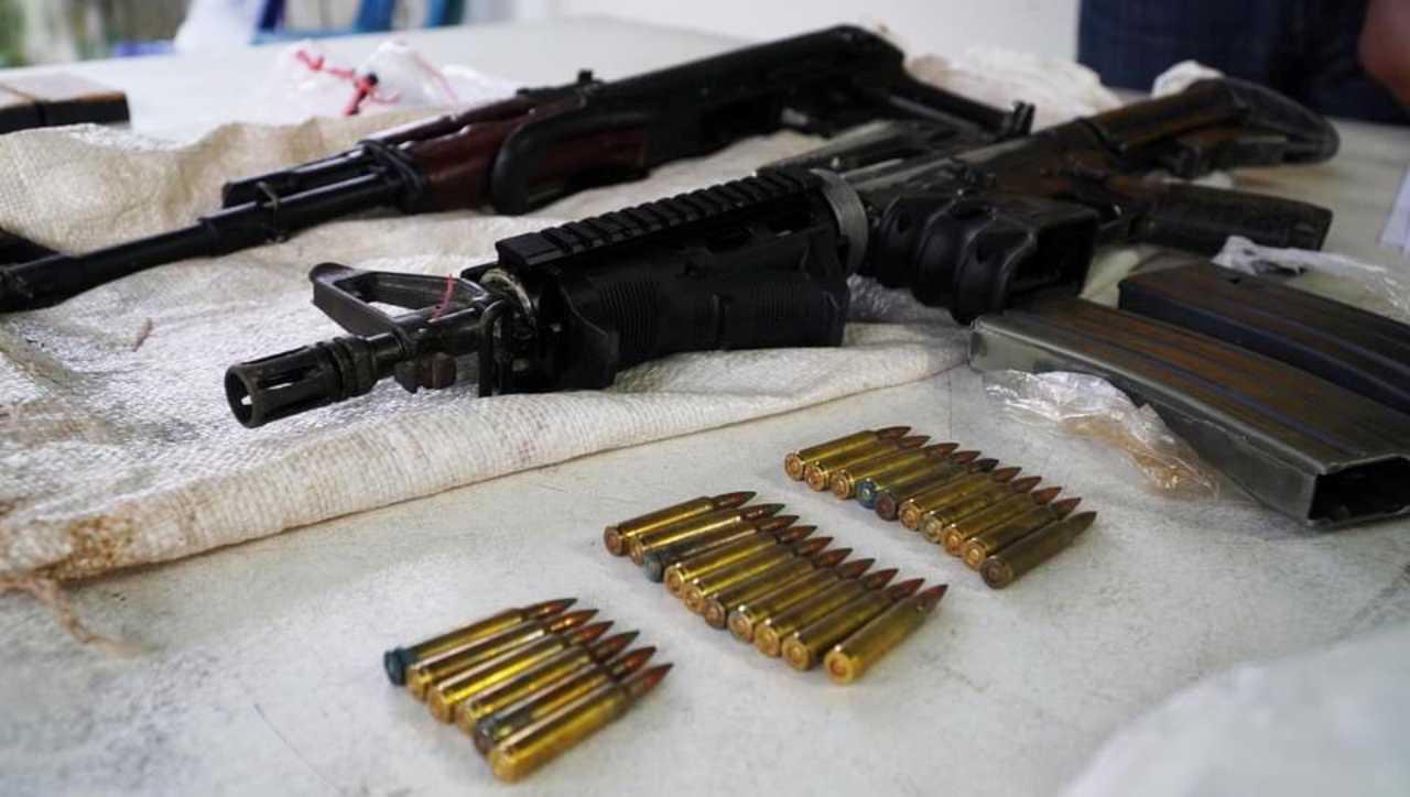 จากการตรวจในครั้งนี้ ตร.พบกระสอบปุ๋ยถูกซุกซ่อนไว้ในหลุม เมื่อเจ้าหน้าที่เปิดกระสอบออกมาดูพบเป็น อาวุธปืนสงคราม ชนิด เอ็ม 16 จำนวน 2 กระบอก และอาวุธปืนสงครามชนิดอาก้า 1 กระบอก แม็กกาซีน จำนวน 4 อัน ข้างในบรรจุกระสุนเต็ม และกระสุนอีกจำนวนหนึ่งบรรจุใส่ถุงพลาสติก รวมเครื่องกระสุนสงคราม จำนวน 128 นัด ซึ่งเจ้าหน้าที่กองพิสูจน์หลักฐานพัทลุงเข้าตรวจสอบดีเอ็นเอ และนำอาวุธปืนทั้งหมดส่งพิสูจน์ยังสำนักงานพิสูจน์หลักฐาน 9 สงขลาต่อไป เพื่อเปรียบเทียบกับปลอกกระสุนที่เคยใช้ก่อเหตุในพื้นที่จังหวัดพัทลุงว่าตรงกับคดีใดบ้าง คาดว่ากลุ่มคนร้ายน่าจะนำอาวุธปืนสงครามดังกล่าวมาแอบซ่อนไว้เพื่อเตรียมก่อเหตุร้ายในพื้นที่ อ.ป่าพะยอม แต่โชคดีมีพลเมืองดีแจ้งเบาะแสให้ ตร.ทราบเสียก่อน.