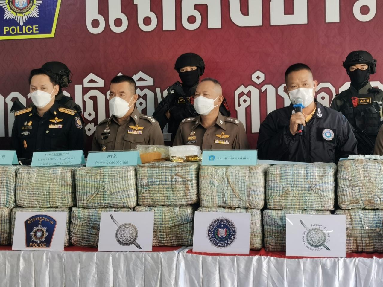 เมื่อวันที่ 6 ธันวาคม 2564 พล.ต.ท.ปิยะ ต๊ะวิชัย ผบช.ภ.5 พล.ต.ต.ชินวิช วิชัยธนพัฒน์ ผบก.ภ.จว.เชียงราย, พล.ต.ต.นันทวิทย์ เทียมบุญธง ผบก.ภ.จว.ลำปาง และ พล.ต.ต.วรพงศ์ คำลือ ผบก.สส.ภ.5 ร่วมกับ พล.ต.จรัส ปัญญาดี รอง ผบ.ศป.บส.ชน. พล.ต.นฤทธิ์ ถาวรวงษ์ ผบ.กกล.ผาเมือง นายไกรเลิศ ดาวเรือง ผอ.ป.ป.ส.ภาค 5 ร่วมกันแถลงข่าวผลการจับกุมคดียาเสพติดรายสำคัญทั้งหมด 4 คดี ยาเสพติดให้โทษประเภท 1 (ยาบ้า) ประมาณ 7,470,000 เม็ด และ ไอซ์ ประมาณ 74 กก.