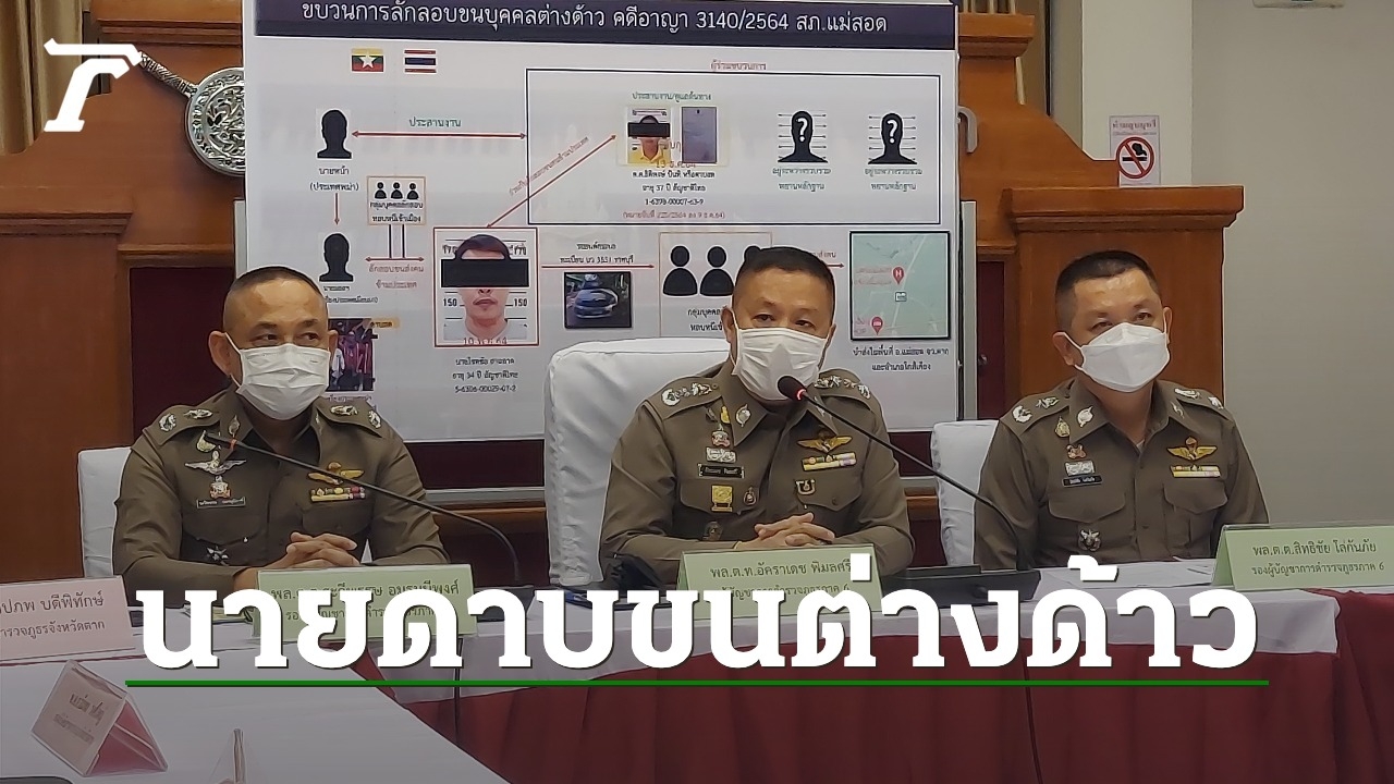 ผบช.ภ.6 นำทีมแถลงรวบ นายดาบตำรวจ สภ.แม่สอด หลังผู้ต้องหาซัดทอดเอี่ยวขบวนการค้าแรงงานต่างด้าว ผู้การฯ ตาก เซ็นสั่งให้ออกจากราชการไว้ก่อนทันที พร้อมเร่งขยายผล