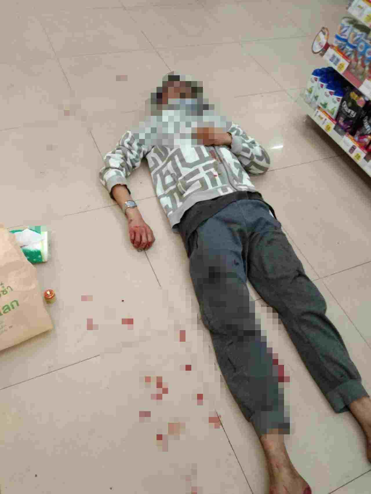 ที่เกิดเหตุ หน้าประตูทางเข้าธนาคาร พบว่า กระจกบานประตูด้านหน้าของธนาคารแตกละเอียด และมีคราบเลือดหยดตามพื้นในธนาคาร และหน้าตู้เอทีเอ็มจำนวนมาก แต่ไม่พบผู้บาดเจ็บ เจ้าหน้าที่ตำรวจจึงเดินตามหยดเลือดไป พบว่าหยดเลือดของคนร้ายไปที่ร้านสะดวกซื้อที่อยู่ห่างจากธนาคารประมาณ 50 เมตร จึงเข้าไปตรวจสอบพบ นายกฤษฎา มาตีกำจร อายุ 28 ปี ชาวบ้าน ต.หนองบอน อ.ประโคนชัย จ.บุรีรัมย์ เข้ามาขอความช่วยเหลือจากพนักงานในร้านสะดวกซื้อ เนื่องจากบาดเจ็บจากการถูกกระจกบาดที่ฝ่ามือข้างขวาเป็นแผลฉกรรจ์และเสียเลือดมาก เจ้าหน้าที่จึงเร่งนำตัวส่งโรงพยาบาลบางพลี เพื่อให้แพทย์เย็บบาดแผล ก่อนจะคุมตัวมาสอบสวนที่ สภ.บางพลี