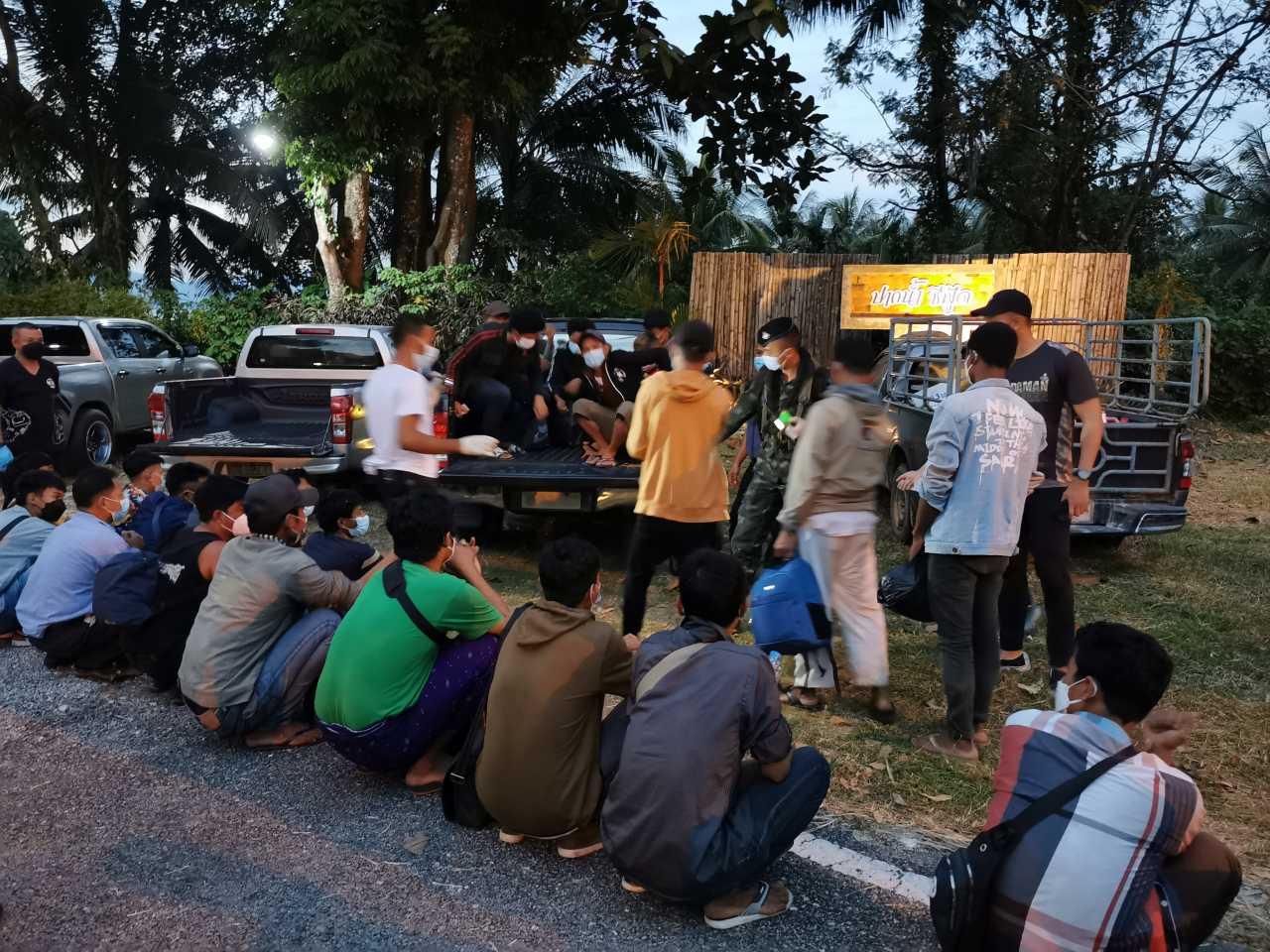 จากการตรวจสอบพบชาวเมียนมาจำนวน 34 คนเป็นชาย 31 คนและหญิง 3 คน อายุระหว่าง 19 ถึง 45 ปี ซุ่มตัวเงียบอยู่ในป่าบนยอดเขา จากการซักถามทราบว่าเดินทางมาจากจังหวัดต่างๆ ของประเทศเมียนมา โดยมีจุดหมายปลายทางที่ประเทศมาเลเซีย ซึ่งทุกคนบอกว่าได้รับการฉีดวัคซีนป้องกัน Covid-19 มาแล้ว 2 เข็ม แต่ไม่มีหลักฐานการเข้าประเทศอย่างถูกกฎหมาย