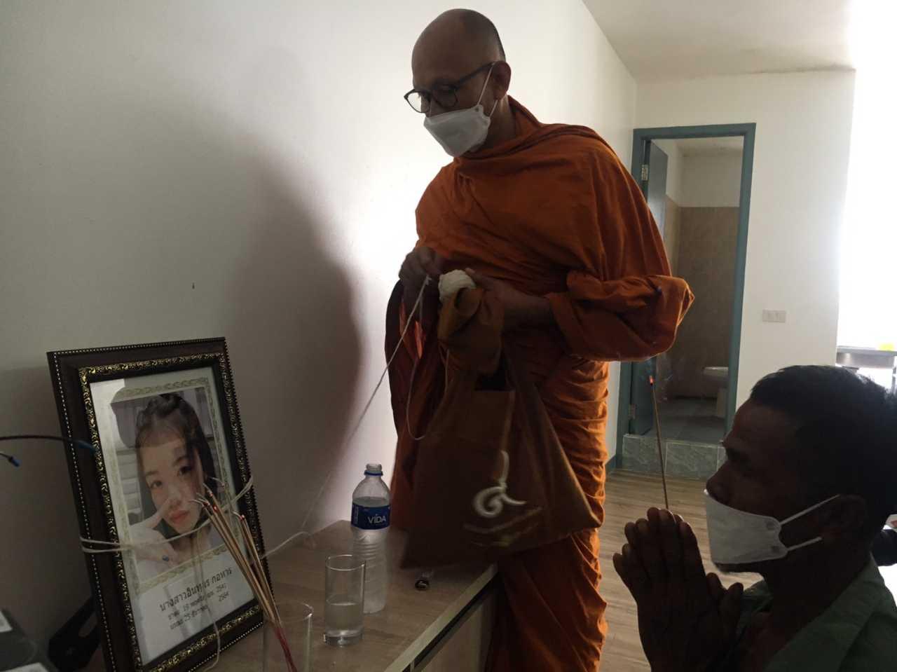 พ่อน้องเต้ยนิมนต์พระมาทำพิธีเชิญวิญญาณที่ห้องเกิดเหตุบนคอนโดย่านบางพลี ท่ามกลางความเงียบสงัดของชั้น 7 ที่คนทยอยย้ายออก เผยน้องมาเข้าฝันแม่อยากให้ประหารคนก่อเหตุ โดยจะฌาปนกิจศพ 30 ธ.ค.นี้