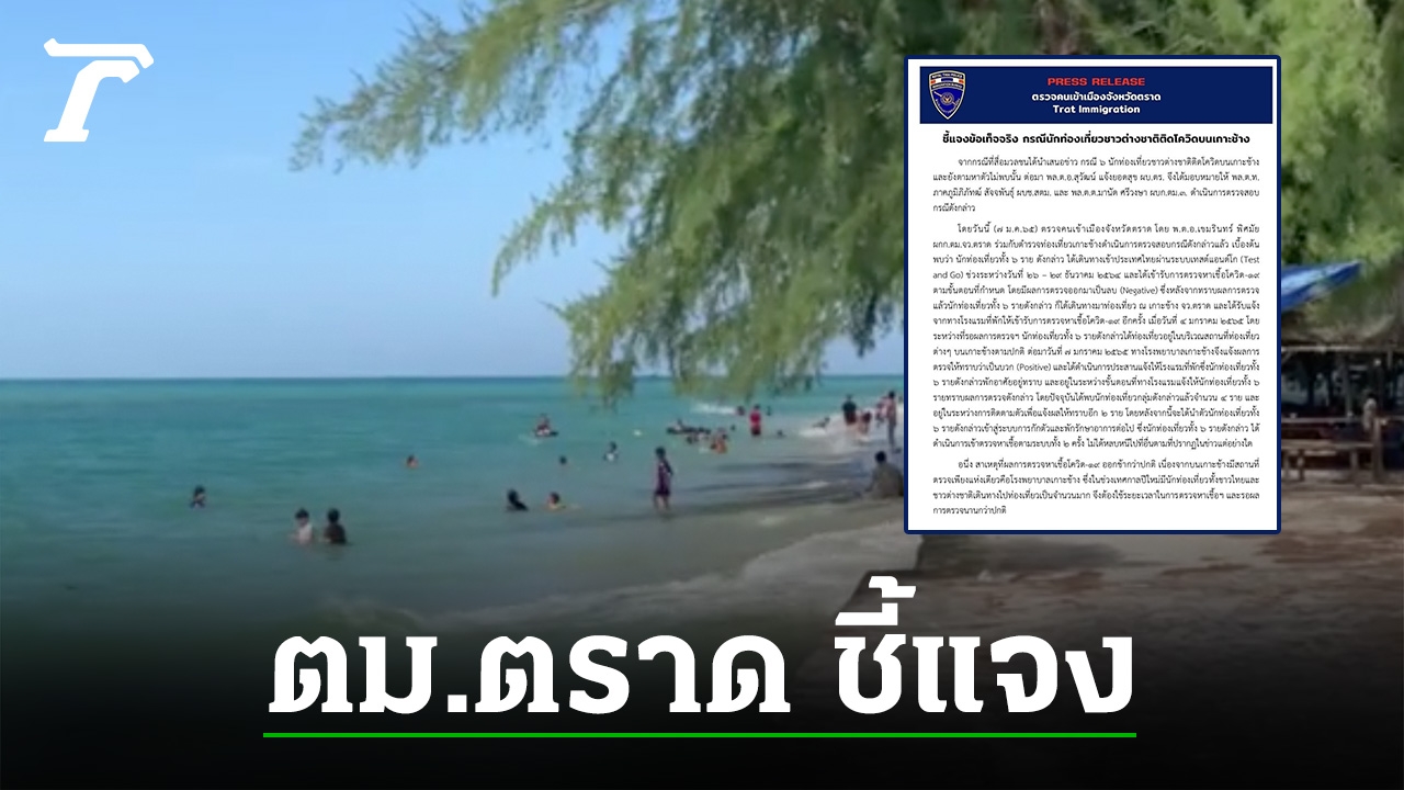 ตม.ตราด ชี้แจงข้อเท็จจริง กรณี 6 นักท่องเที่ยวต่างชาติติดโควิด-19 บนเกาะช้าง ยันไม่ได้หลบหนีไปที่อื่นตามที่ปรากฏในข่าวแต่อย่างใด เจอแล้ว 4 ราย อยู่ระหว่างการติดตามตัวอีก 2