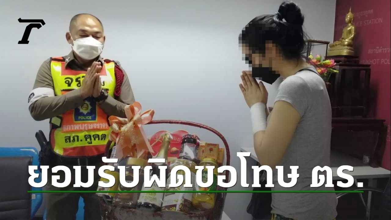 สาวขับเบนซ์ป้ายแดง ที่เมาแล้วขับย้อนศรแถมทำร้ายตำรวจที่มาระงับเหตุ ได้หอบกระเช้ามอบให้ ตร.ที่ถูกตัวเองทำร้าย พร้อมยกมือไหว้ขอโทษสังคมและตำรวจคูคต ยอมรับผิดยืนยันจะไม่ทำแบบนี้อีกแล้ว