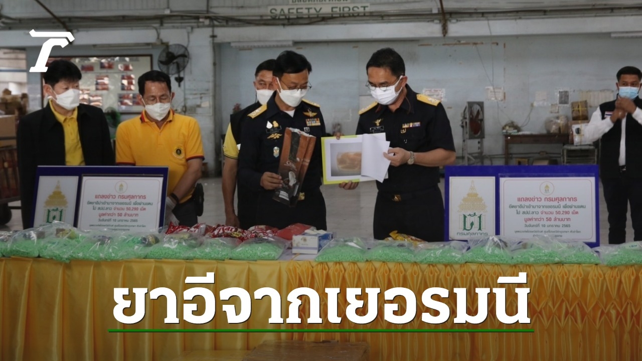 กรมศุลกากรตรวจยึดยาอี นำเข้ามาจากเยอรมนี ถูกส่งมาในกล่องพัสดุเพื่อผ่านแดนไปยัง สปป.ลาว มูลค่ากว่า 50 ล้านบาท ซึ่งเป็นครั้งแรกที่พบยาเสพติดในพัสดุภัณฑ์ระหว่างประเทศ