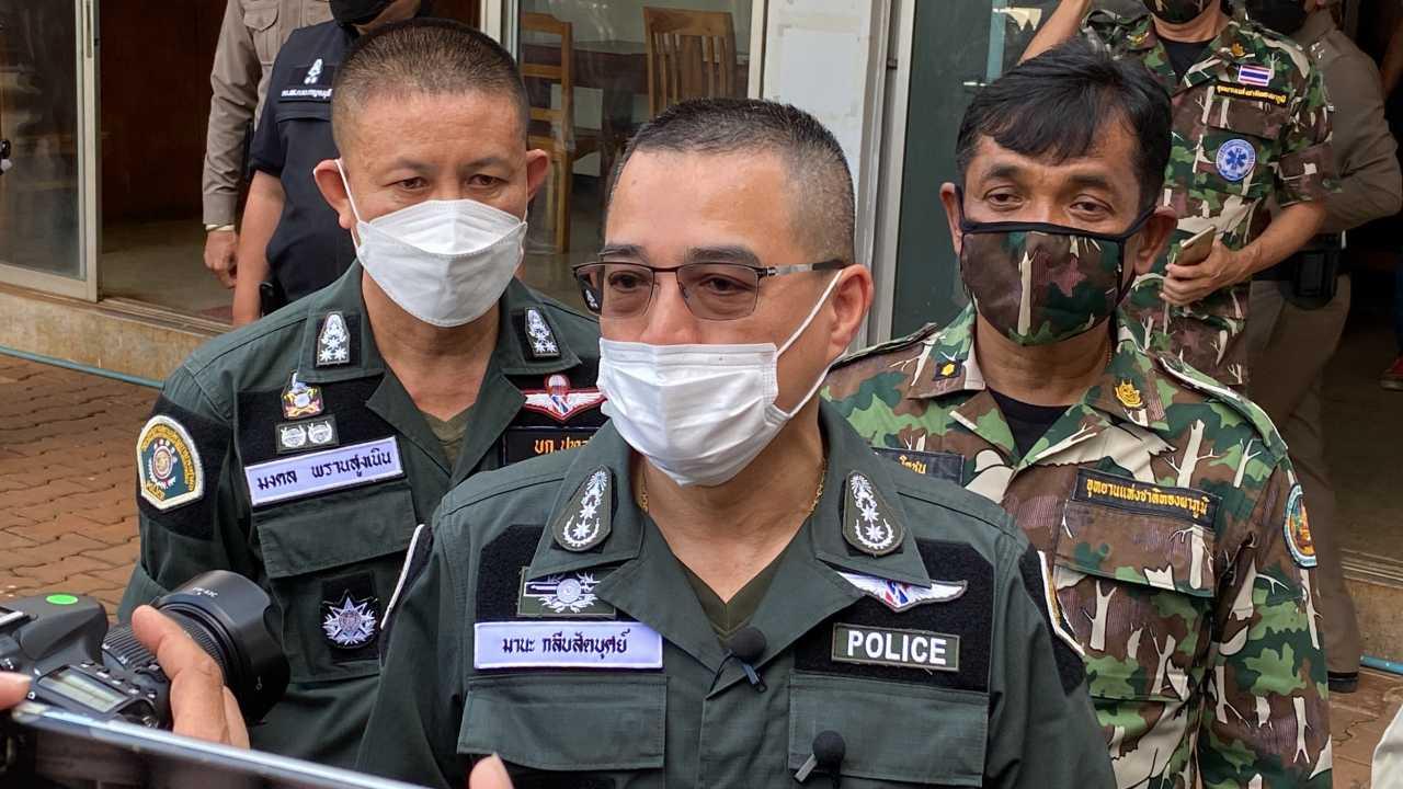 เมื่อวันที่ 14 ม.ค.2565 ที่ ศปก.สภ.ทองผาภูมิ พล.ต.อ.รอย อิงคไพโรจน์ รอง ผบ.ตร.และ ผอ.ศปทส.ตร. พล.ต.ท.ธนายุตม์ วุฒิจรัสธำรงค์ ผบช.ภ.7, พล.ต.ต.บุญญฤทธิ์ รอดมา รอง ผบช.ภ.7, พล.ต.ท.ปัญญา ปิ่นสุข ผบช.ประจำ สนง.ผบ.ตร., พล.ต.ต.มานะ กลีบสัตบุศย์ ผบก.ปทส. พล.ต.ต.ไพโรจน์ คุ้มภัย ผบก.ภ.จว.กาญจนบุรี และ พ.ต.อ.สันติ พิทักษ์สกุล ผกก.สภ.ทองผาภูมิ ได้ร่วมกันแถลงข่าวการจับกุมผู้ต้องหาตามหมายจับ ศาลจังหวัดทองผาภูมิ มีผู้ต้องหารวม 5 ราย ได้แก่ 1. นายรัชชานนท์ เจริญทรัพย์ อายุ 30 ปี 2. นายศุภชัย เจริญทรัพย์ อายุ 34 ปี 3. นายจอแห่ง พนารักษ์ อายุ 38 ปี 4. นายกูกือ ยินดี อายุ 37 ปี และ 5. นายโชเอ ไม่มีชื่อสกุล อายุ 66 ปี