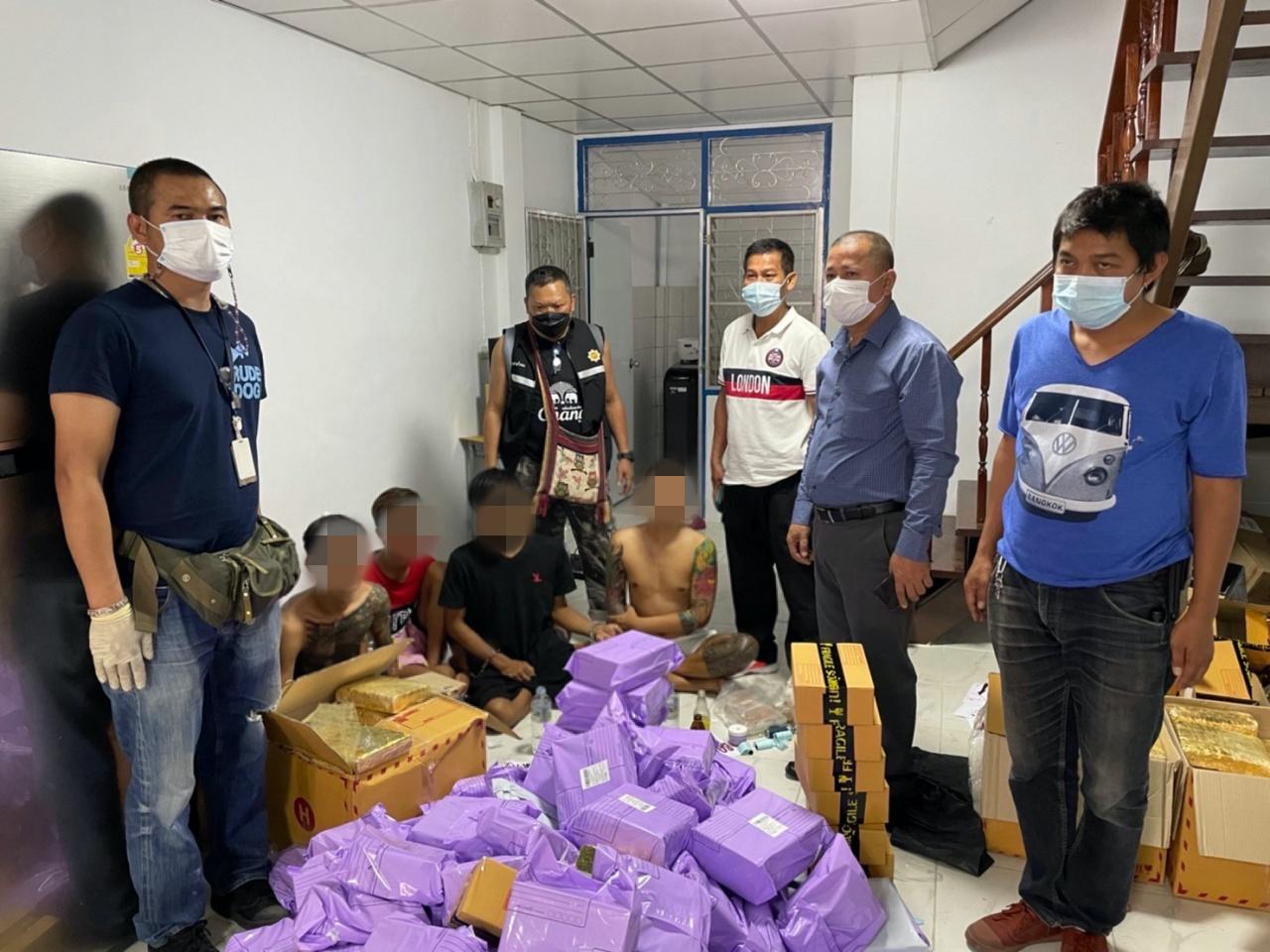 แก๊งวัยรุ่นสายไหม รวมตัวค้ากัญชาแห้งอัดแท่ง สั่งจากประเทศเพื่อนบ้านมาเก็บไว้ในบ้านเช่า ส่งพัสดุไปรษณีย์ให้ลูกค้าที่สั่งซื้อออนไลน์ ตำรวจบุกจับตะลึงของกลางเต็มบ้าน 325 กก. สารภาพทำมาเป็นปีแล้ว