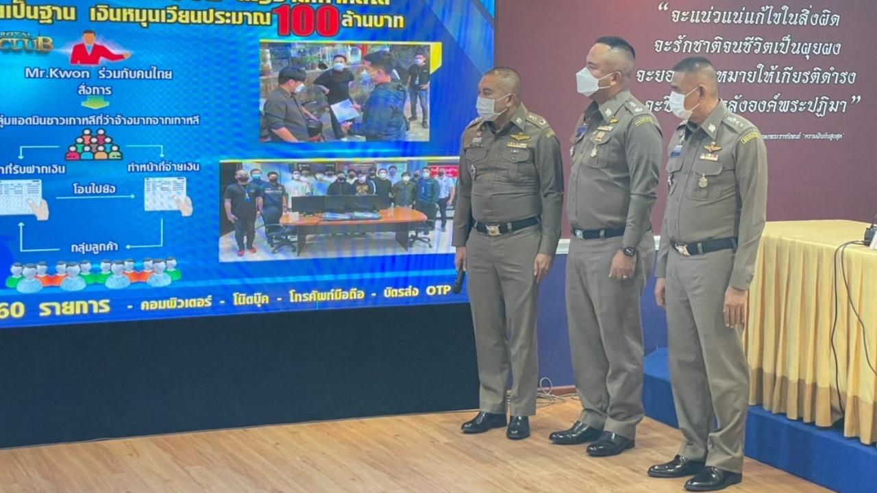 พล.ต.ท.ภาคภูมิภิภัทฒ์ สัจจพันธุ์ ผบช.สตม.,พล.ต.ต.ณฐพล แสวงกิจ รอง ผบช.สตม., พล.ต.ต.ยิ่งยศ เทพจำนงค์ รอง ผบช.สตม., พล.ต.ต.อาชยน ไกรทอง รอง ผบช.สตม. พล.ต.ต.พันธนะ นุชนารถ ผบก.สส.สตม., พ.ต.อ.สถิตย์ พรมอุทัย รอง ผบก.สส.สตม. นำกำลังเจ้าหน้าที่ตำรวจ กก.ปอพ.บก.สส.สตม., ศปอส.ตร. เข้าตรวจค้น อาคาร เลขที่ 245/148 - 149 หมู่ 9 ตำบลหนองปรือ อำเภอบางละมุง จังหวัดชลบุรี ตามหมายค้นศาลแขวงพัทยา ที่ 2/2564 ลงวันที่ 3 ม.ค.65 และทำการตรวจค้น ห้องเลขที่ 290/54 Northshore Condominium หมู่ 9 ตำบลหนองปรือ อำเภอบางละมุง จังหวัดชลบุรี ตามหมายค้นศาลแขวงพัทยา ที่ 1/2564 ลงวันที่ 3 ม.ค.65 จับกุม ชาวเกาหลีใต้ จำนวน 11 คน ได้แก่ 1. MR.KYOUNGMIN สัญชาติเกาหลีใต้ อายุ 36 ปี 2. MR.HOYEONG สัญชาติเกาหลีใต้ อายุ 27 ปี 3. MR.GANGTO สัญชาติเกาหลีใต้ อายุ 27 ปี 4.MR.GYEONGSU สัญชาติเกาหลีใต้ อายุ 32 ปี 5. MR.JEONG สัญชาติเกาหลีใต้ อายุ 24 ปี 6.MR.SEUNGWOOK สัญชาติเกาหลีใต้ อายุ 24 ปี 7. MR.KYEONGKYU สัญชาติเกาหลีใต้ อายุ 20 ปี 8. MR.SUNGHYUN สัญชาติเกาหลีใต้ อายุ 37 ปี 9. MR.WOOKJIN สัญชาติเกาหลีใต้ อายุ 36 ปี 10.MR.YOUNGJUN สัญชาติเกาหลีใต้ อายุ 32 ปี 11. MR.DOHYEON สัญชาติเกาหลีใต้ อายุ 24 ปี ในข้อหา “ร่วมกันจัดให้เล่นพนันออนไลน์โดยผิดกฎหมายและเป็นบุคคลต่างด้าวทำงานโดยไม่ได้รับอนุญาต, เป็นนายจ้างรับบุคคลต่างด้าวเข้าทำงานโดยไม่ได้รับอนุญาต” พร้อมยึดของกลาง รวมทั้งหมดจำนวน 60 รายการ แบ่งเป็น คอมพิวเตอร์ จำนวน 10 เครื่อง หน้าจอคอมพิวเตอร์ จำนวน 19 จอ คอมพิวเตอร์แบบพกพา จำนวน 2 เครื่อง โทรศัพท์มือถือจำนวน 18 เครื่อง และบัตรส่งรหัส otp จำนวน 11 ใบ