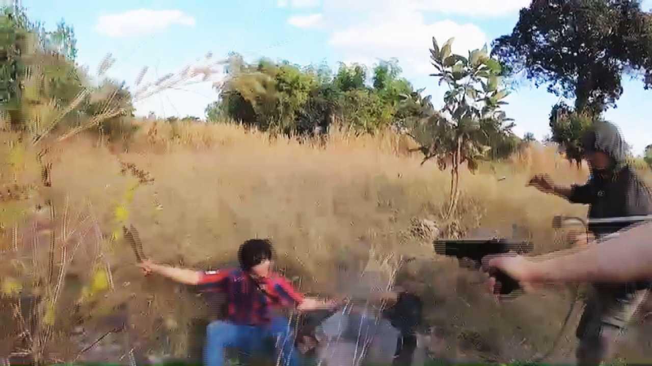 คลิปขณะชุดสืบสวน สภ.นาหว้า เข้าจับกุมผู้ต้องหาตามหมายจับคดียาเสพติด แต่คนร้ายเกิดฮึดสู้คว้ามีดคู่ฟัน ตร.เจ็บ 2 ราย จนท.ยิงสวน 2 นัดสิ้นฤทธิ์ ดำเนินคดี 5 ข้อหาหนัก เผยเป็นนักเลงประจำหมู่บ้าน