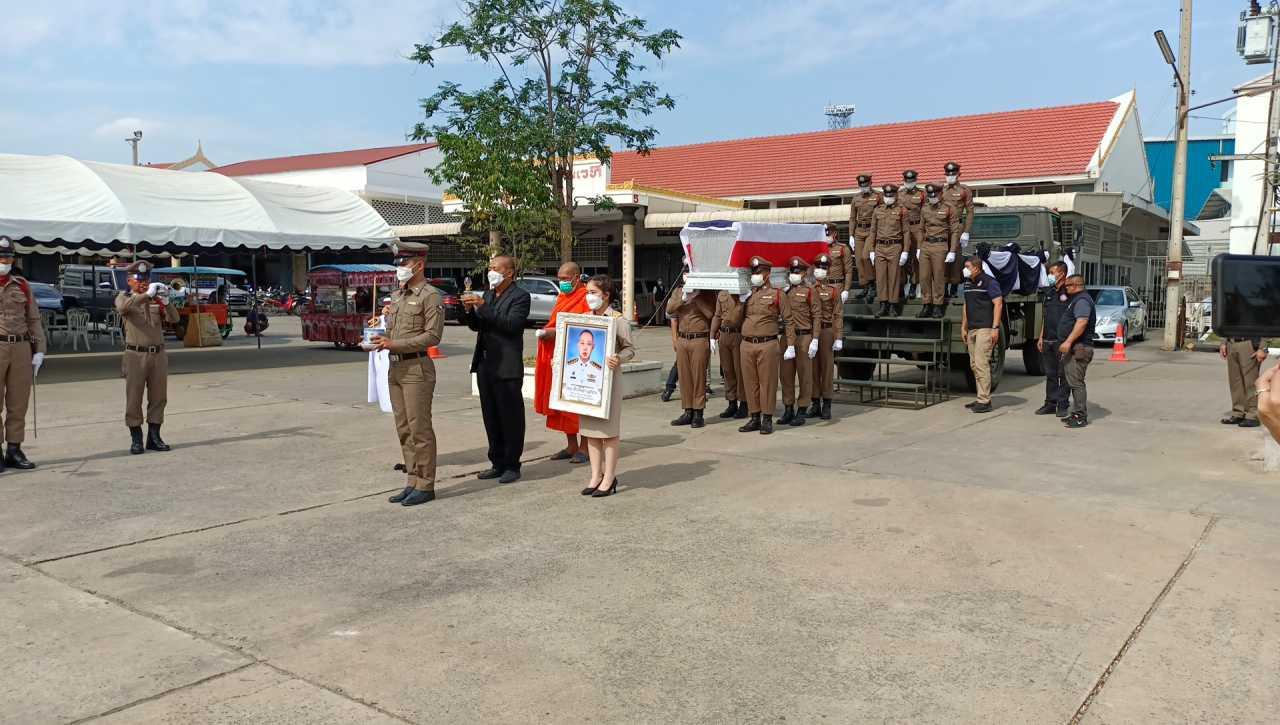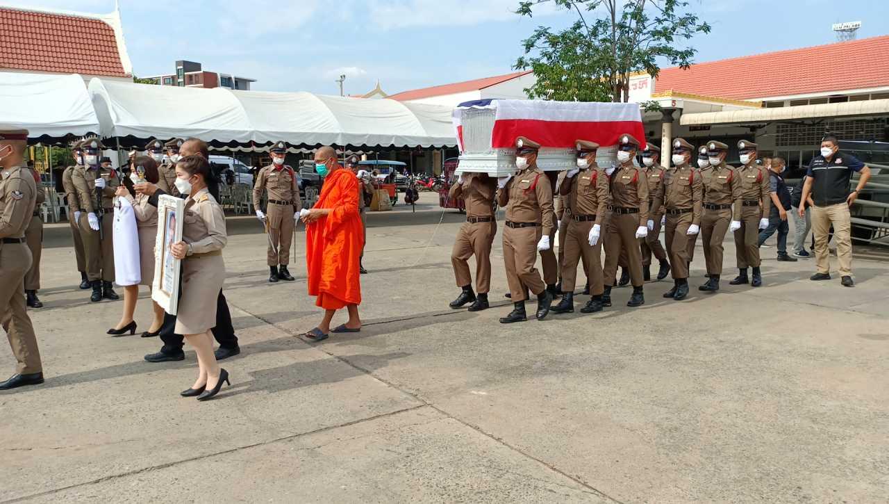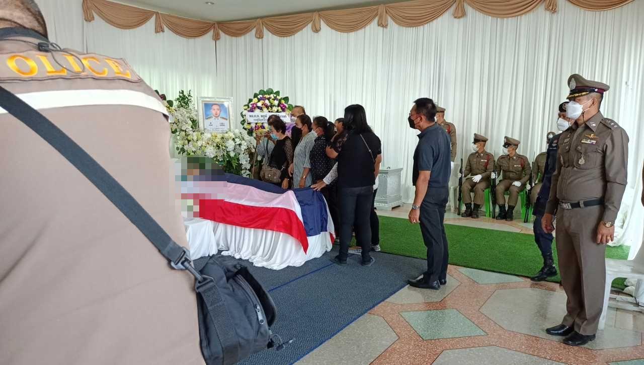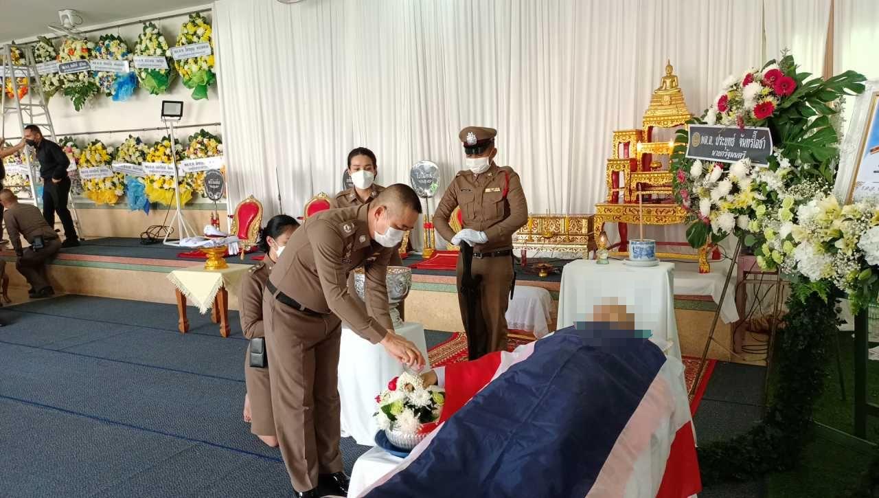 บรรยากาศงานศพ ผู้กองเอก ตำรวจพลีชีพถูกคนร้ายยิงเจ็บสาหัส ขณะจับหนุ่มคลั่งยายิงคนตาย ก่อนเสียชีวิตภายหลัง ได้รับพระราชทานน้ำหลวงอาบศพที่วัดนครสวรรค์ ผู้การนครสวรรค์ แจงเงินช่วยเหลือจาก ตร.
