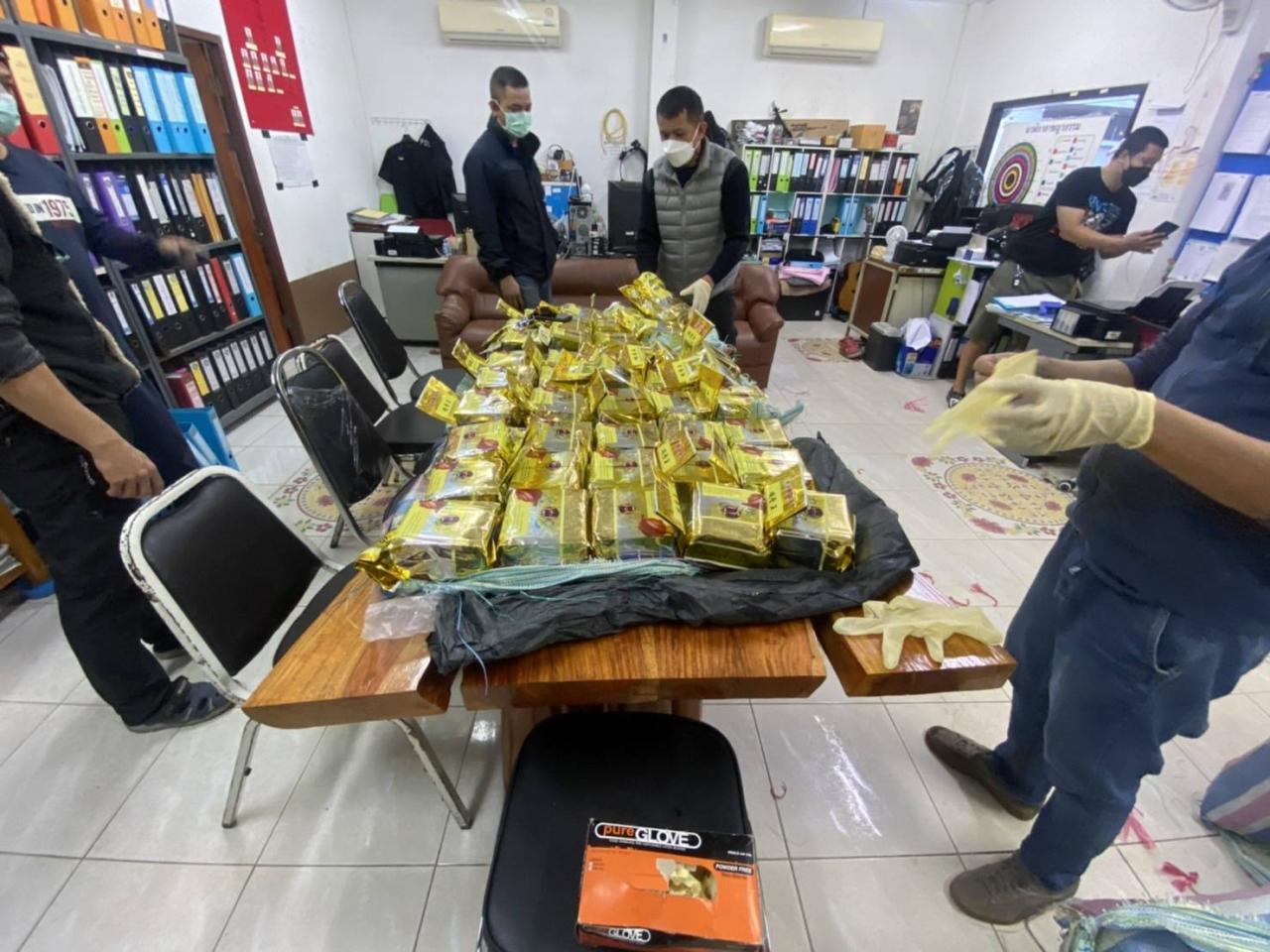 ต่อมาได้ตรวจพบนายทรงสิทธิ์ขับขี่รถจักรยานยนต์ของกลางไปตามถนนไปทางไร่สับปะรดในหมู่บ้าน เจ้าหน้าที่จึงได้นำรถออกไล่ติดตามไปกระทั่งถึงกลางไร่สับปะรดนายทรงสิทธิ์ได้จอดรถและลงไปขนกระสอบฟางคละสีหลายใบไปวางไว้ข้างทาง เจ้าหน้าที่ที่ติดตามไปจึงได้แสดงตัวเข้าไปตรวจสอบ พบว่ากระสอบที่นายทรงสิทธิ์กำลังขนมีจำนวน 7 ใบ เมื่อเปิดดูพบห่อบรรจุถุงใบชาสีเหลืองเอาไว้อยู่เต็มกระสอบ แต่ภายในกลับเป็นยาไอซ์ชนิดเกล็ด นับรวมกันได้จำนวน 100 ก้อน น้ำหนักก้อนละประมาณ 1 กิโลกรัม รวมของกลางทั้งหมดจำนวนประมาณ 100 กิโลกรัม เจ้าหน้าที่จึงตั้งข้อหาว่าร่วมกันจำหน่าย มีไว้ในครอบครองเพื่อจำหน่าย ซึ่งยาเสพติดให้โทษประเภท 1 (ไอซ์หรือเมทแอมเฟตามีน) โดยฝ่าฝืนต่อกฎหมาย