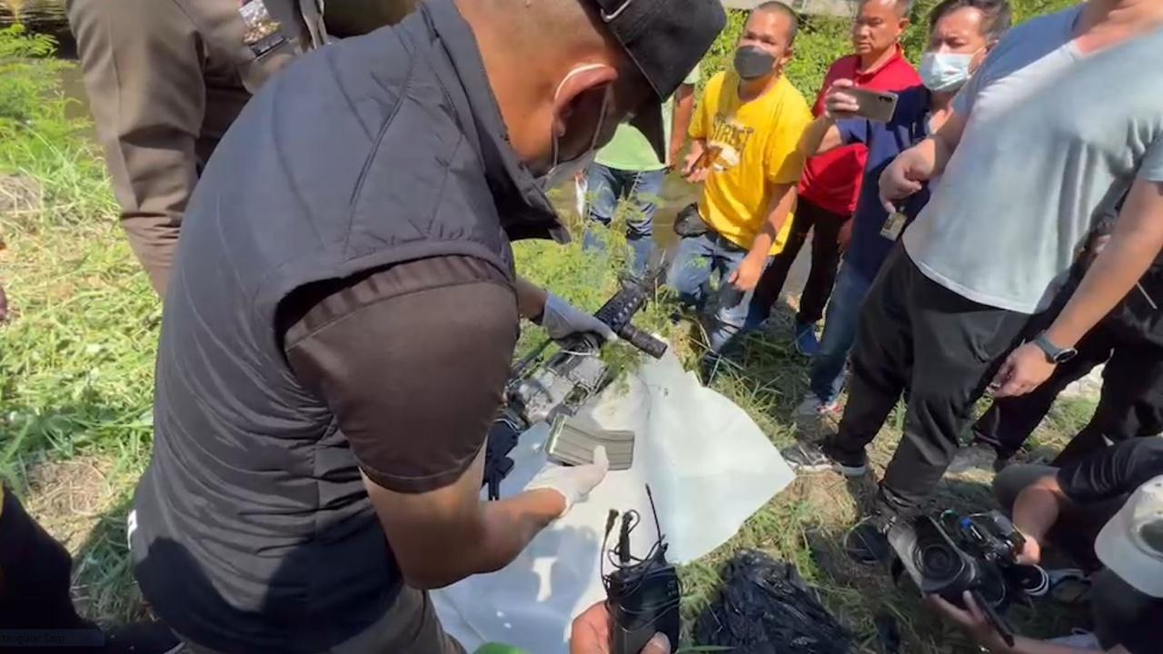 จนกระทั่งเวลาผ่านไปเกือบ 2 ชั่วโมง นักประดาน้ำน้ำก็พบปืนของกลางแล้วอยู่ในคลองบางระนก สภาพห่อด้วยด้วยถุงพลาสติกสีดำ โดยพลตำรวจตรีมานพ เปิดเผยว่า จากการตรวจสอบเบื้องต้นคาดว่าอาวุธปืนดังกล่าวเป็นเป็นปืนเล็กยาวที่มีลักษณะคล้ายกับ เอ็ม 4 CQB ซึ่งต้องนำส่งไปตรวจพิสูจน์ที่กองพิสูจน์หลักฐาน เพื่อ พิสูจน์ทราบยี่ห้อ รุ่นของปืนให้แน่ชัด โดยเฉพาะการตรวจสอบเทียบเคียงกับปลอกกระสุนปืนที่พบในที่เกิดเหตุว่า ถูกยิงออกจากปืนนี้หรือไม่ เพื่อเอาไปประกอบสำนวนดำเนินคดี หากผลการตรวจพิสูจน์ระบุว่าปืนของกลางเป็นอาวุธสงคราม ก็จะดำเนินคดีเพิ่มเติมในข้อหามีอาวุธสงครามไว้ในครอบครองต่อไป ส่วนจะนำตัวผู้ต้องหาไปทำแผนประกอบคำรับสารภาพหรือไม่นั้น เป็นสิทธิ์ของผู้ต้องหา เมื่อพนักงานสอบสวนทำสำนวนแล้วเสร็จ ก็จะนำตัวไปขออำนาจศาลธนบุรีฝากครั้งต่อไปซึ่งมีกำหนดภายในวันพรุ่งนี้ (1 ก.พ.65).